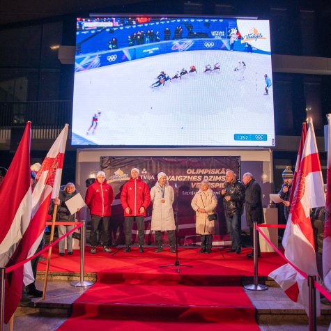 Lielajā laukumā tika godināti šorttrekists un bronzas medaļas ieguvējs Roberts Krūzbergs, bobslejists Jēkabs Kalenda un šorttreka treneris Kārlis Krūzbergs.