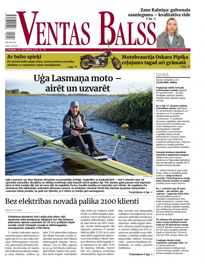Ventas Balsī” un e-avīzē https://www.ventasbalss.lv/e-avize 14. oktobrī lasiet: