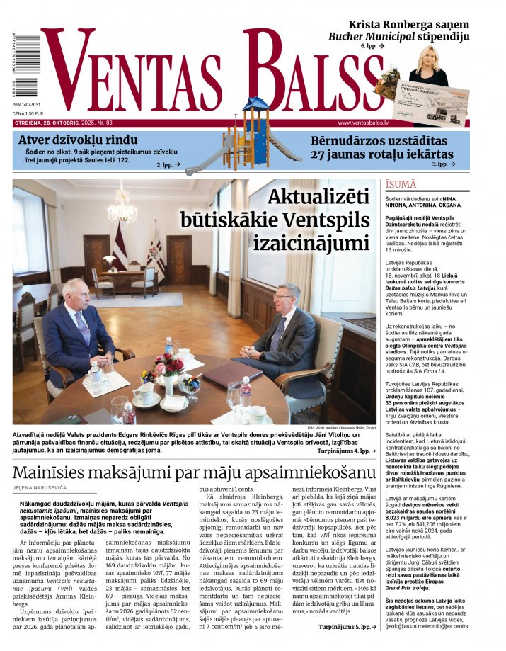 Ventas Balsī” un e-avīzē https://www.ventasbalss.lv/e-avize 28. oktobrī lasiet: