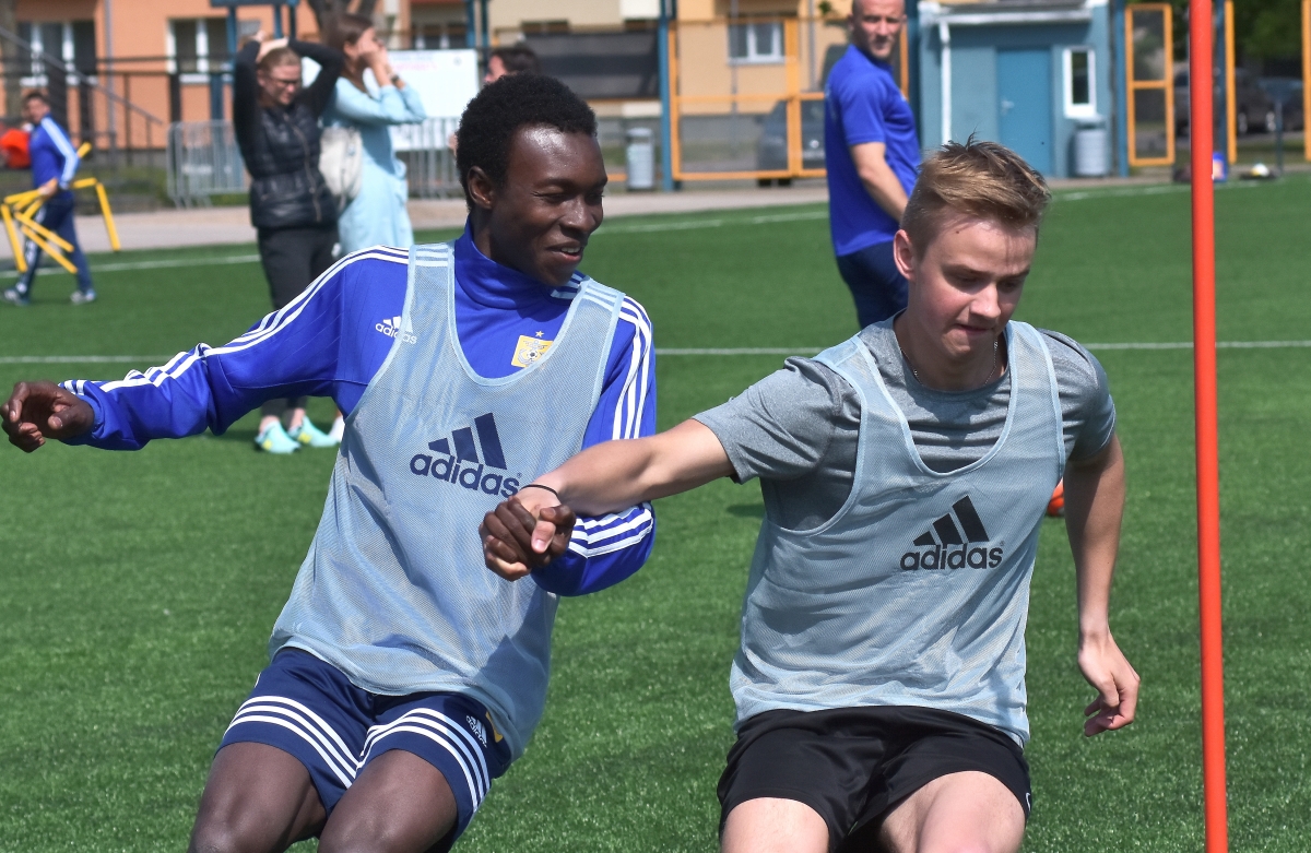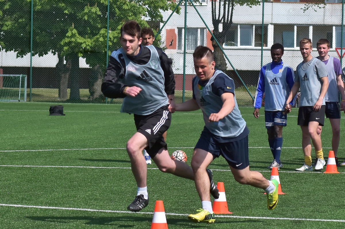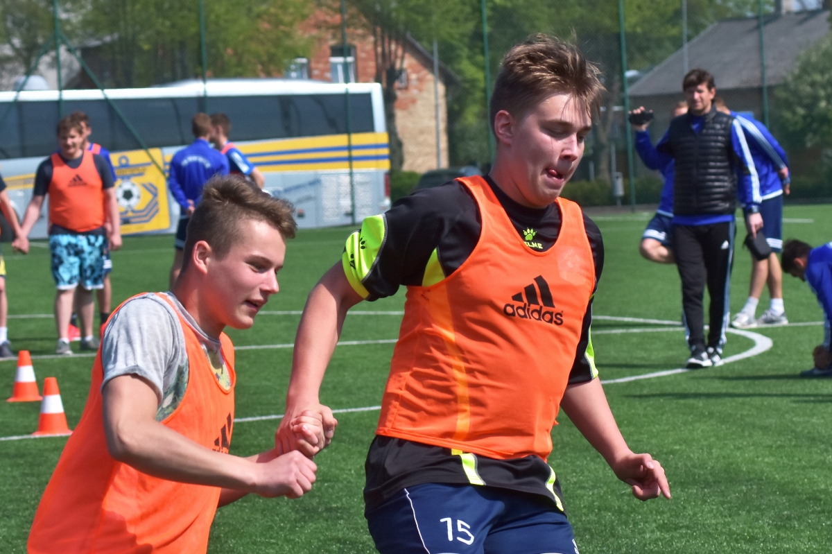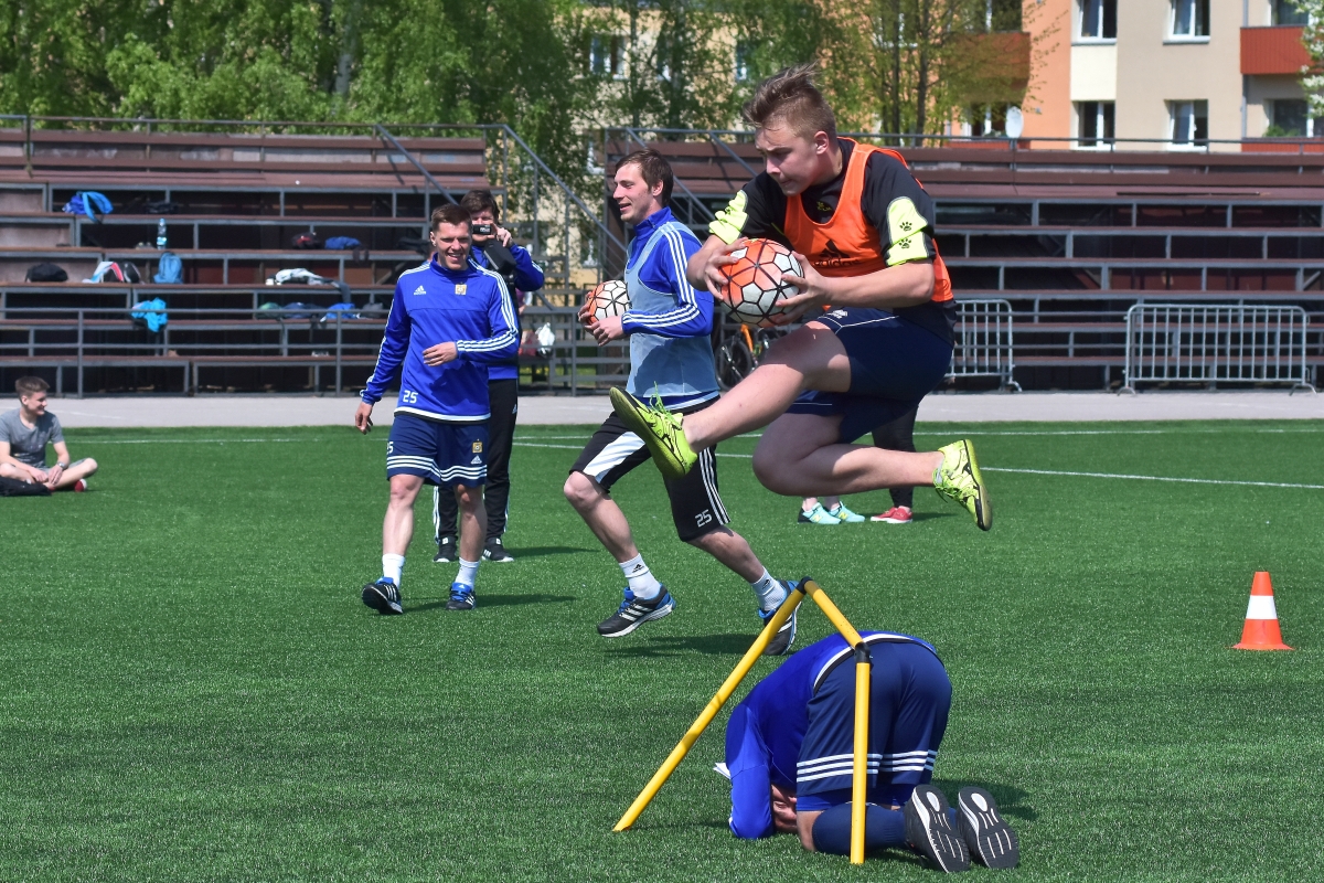 Tehnikuma audzēkņu un FK Ventspils sportiskā sadarbība. Foto Aivars Ķesteris
