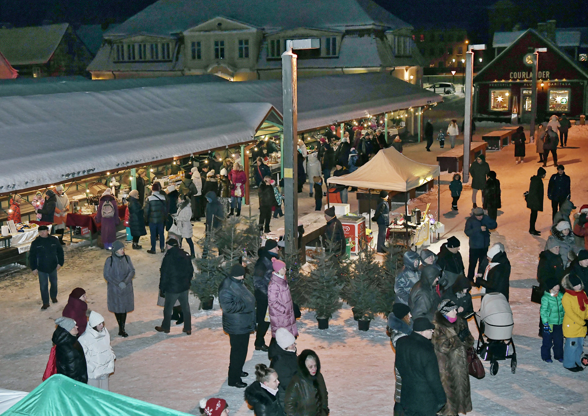 Vecpilsētas ziemas vakara tirgus