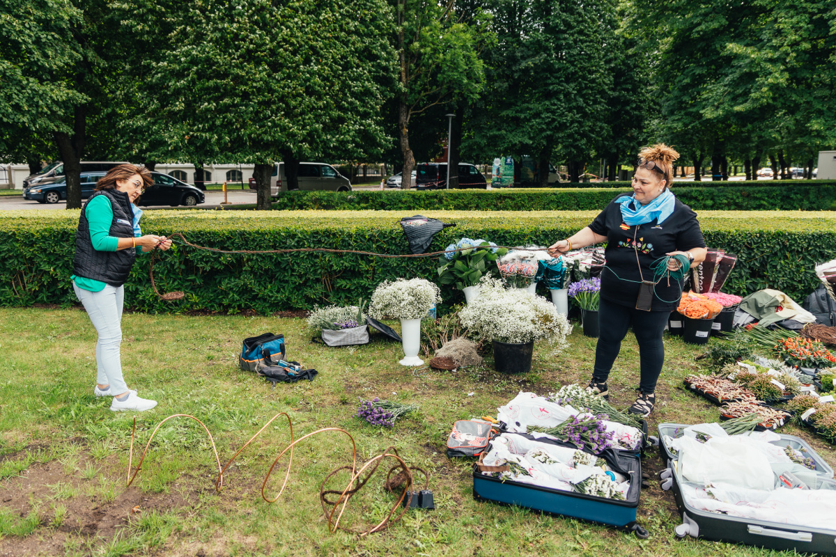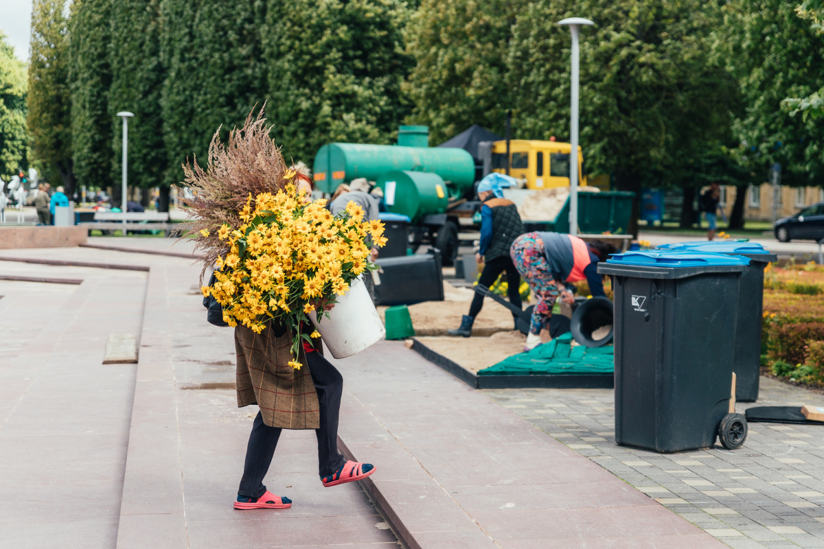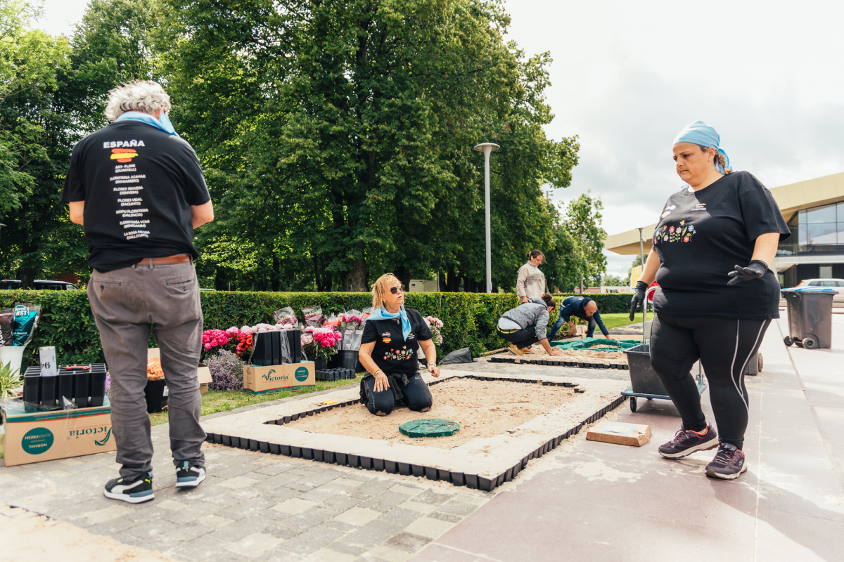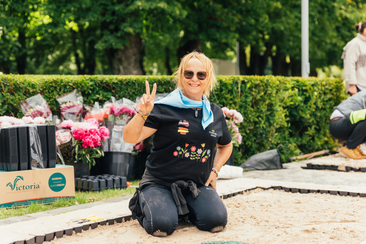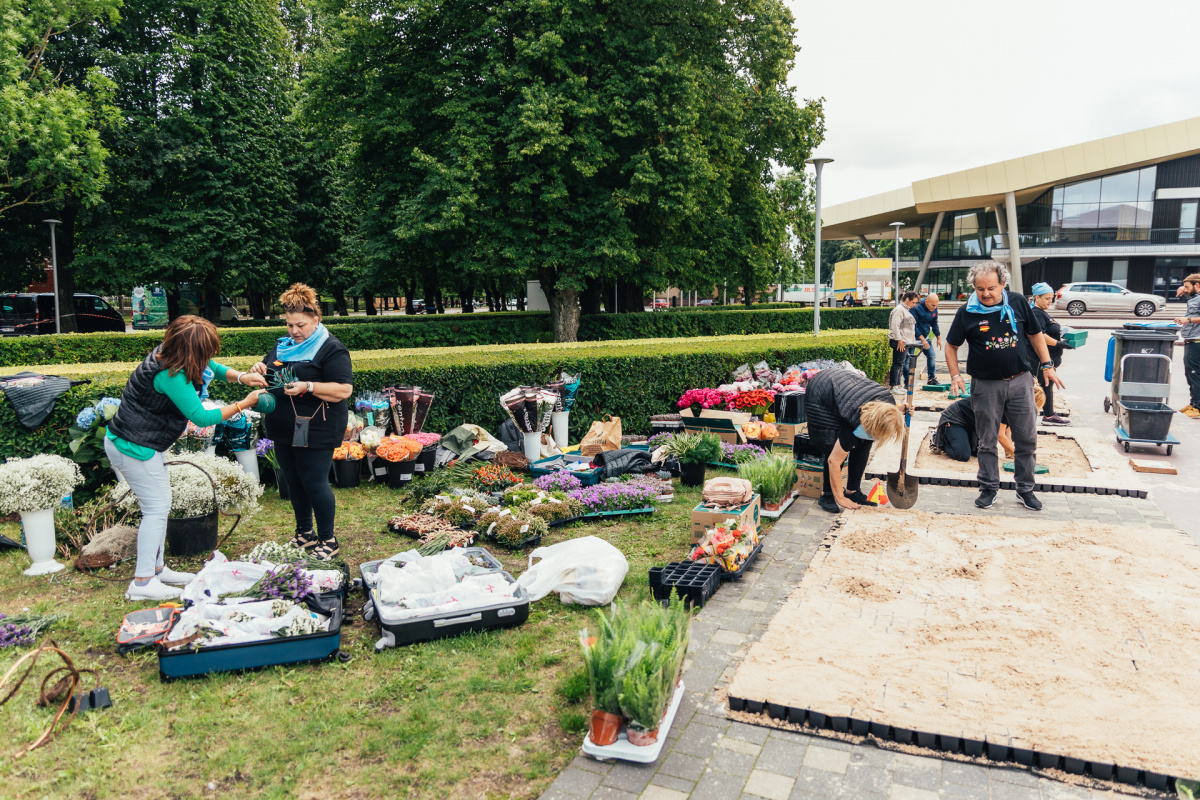 Ziedu paklāju veidošana lielajā laukumā