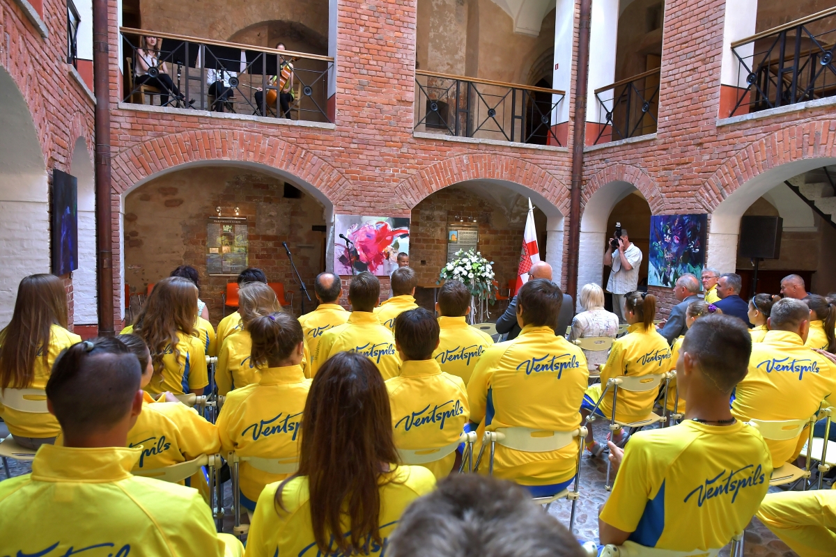 Latvijas 4.vasaras Olimpiādes Ventspils sportistu delegācijas pieņemšana pie domes vadības. Foto Aivars Ķesteris