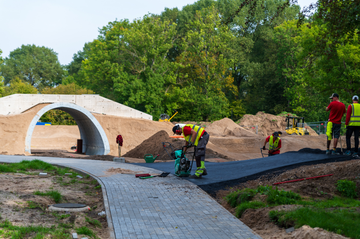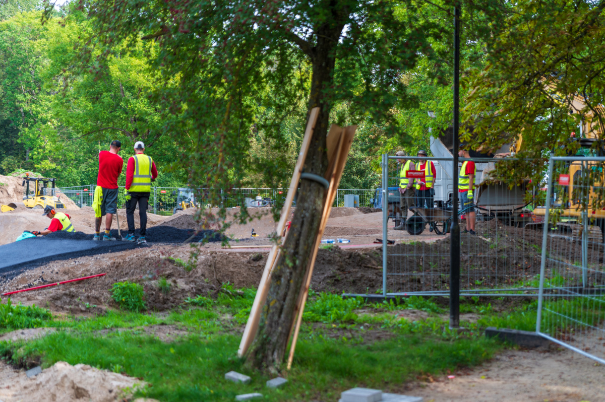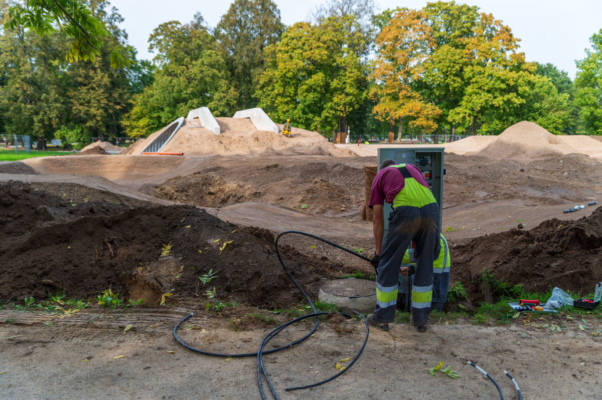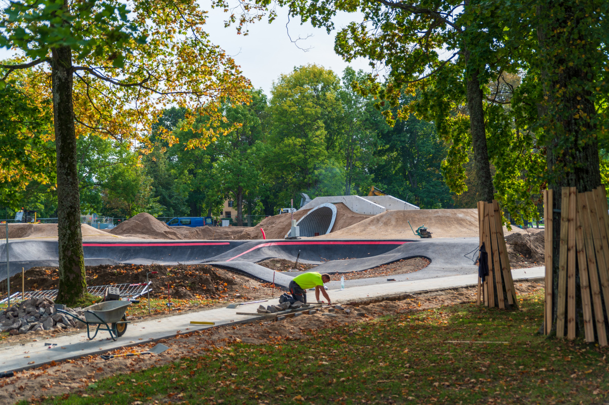 Aktīvi turpinās veloparka būvniecība Reņķa dārzā