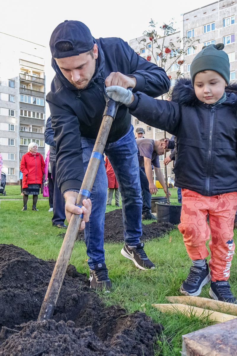 Labiekārtotajos pagalmos iestādīti koki