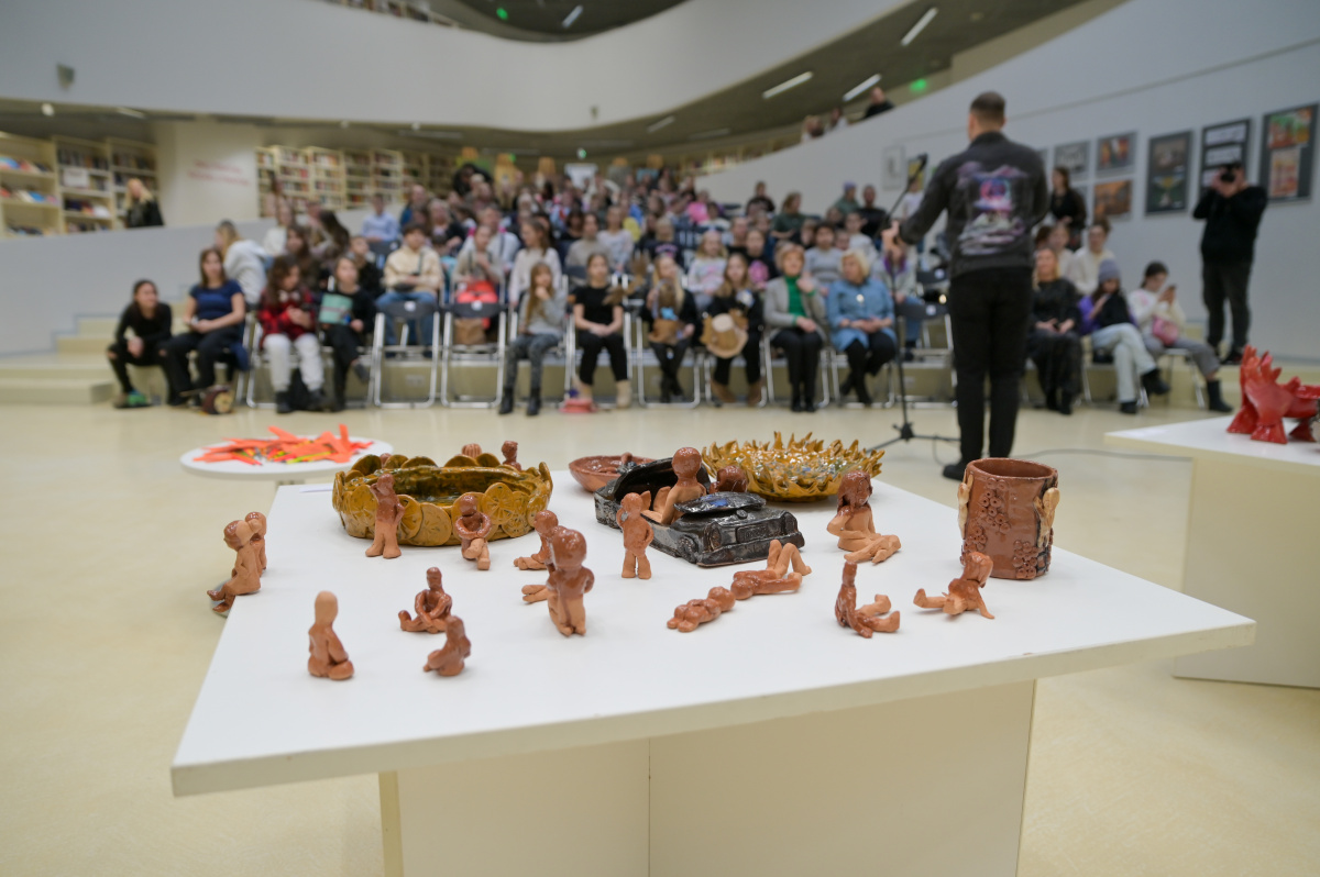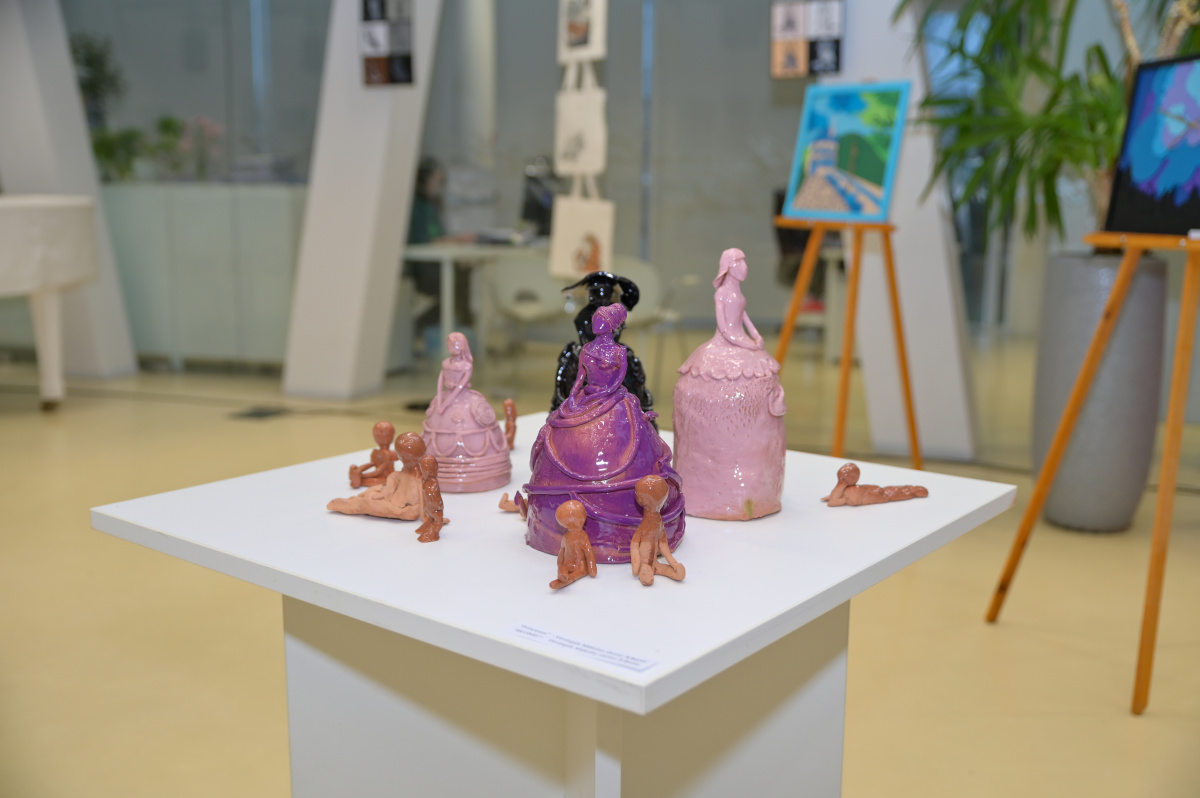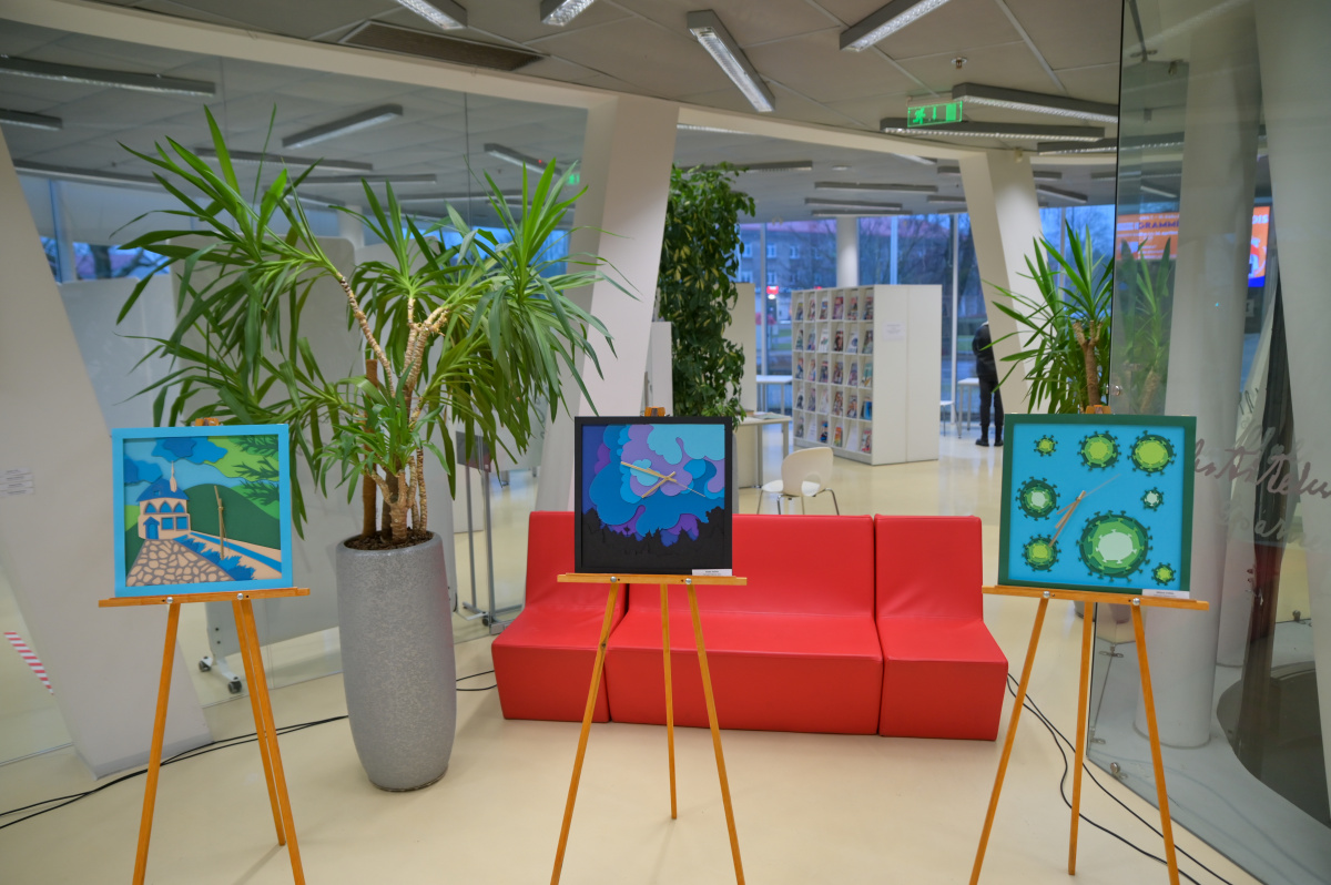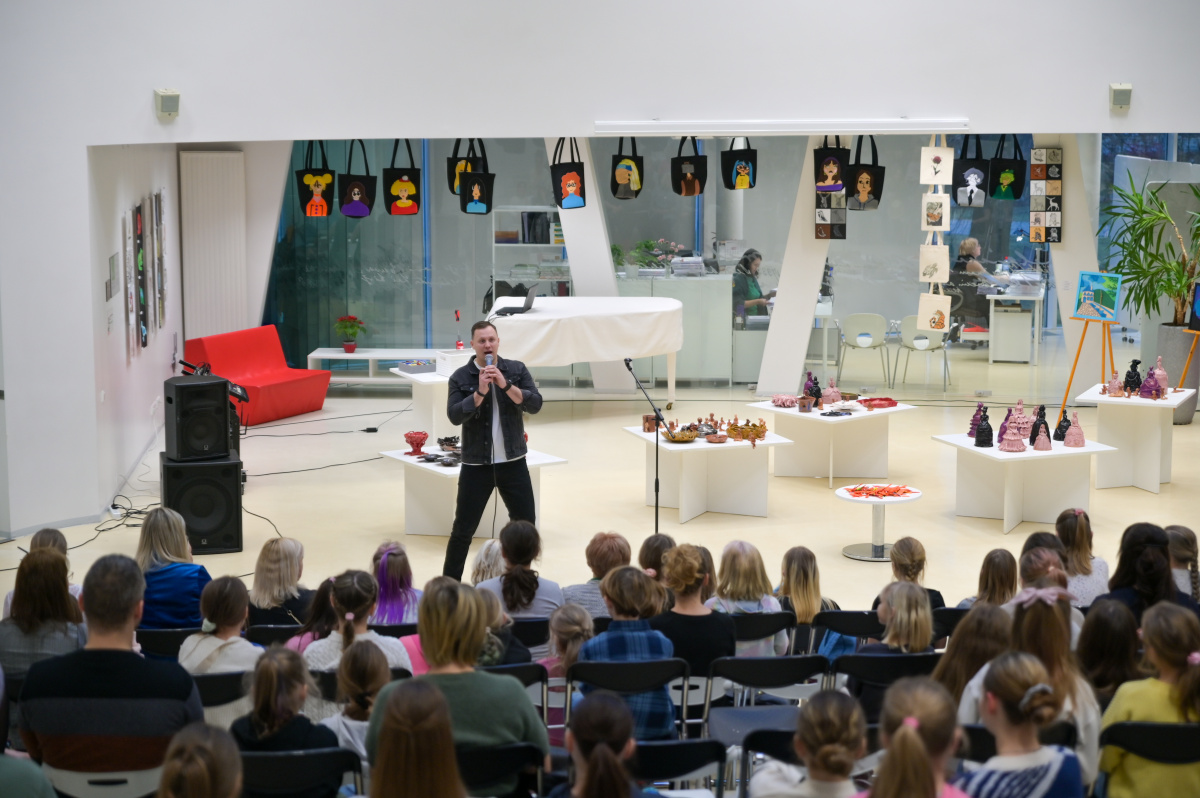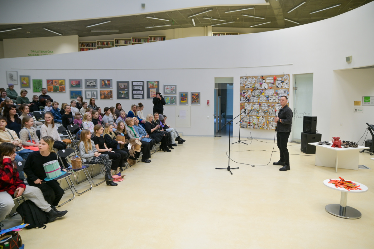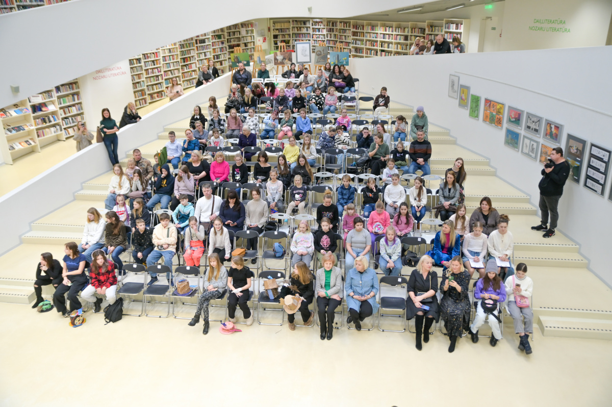 Pārventas bibliotēkā atklāta Mākslas skolas audzēkņu darbu izstāde Krāsu putenis