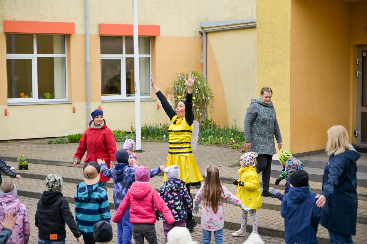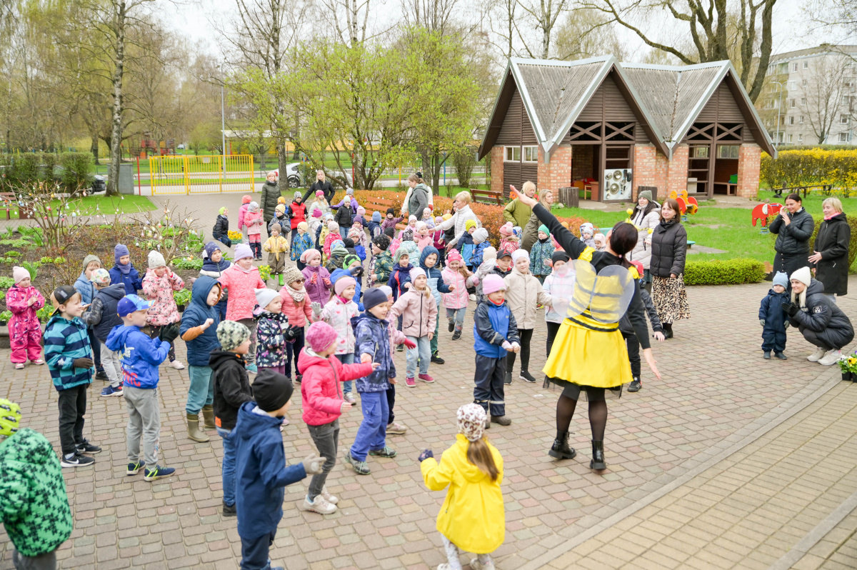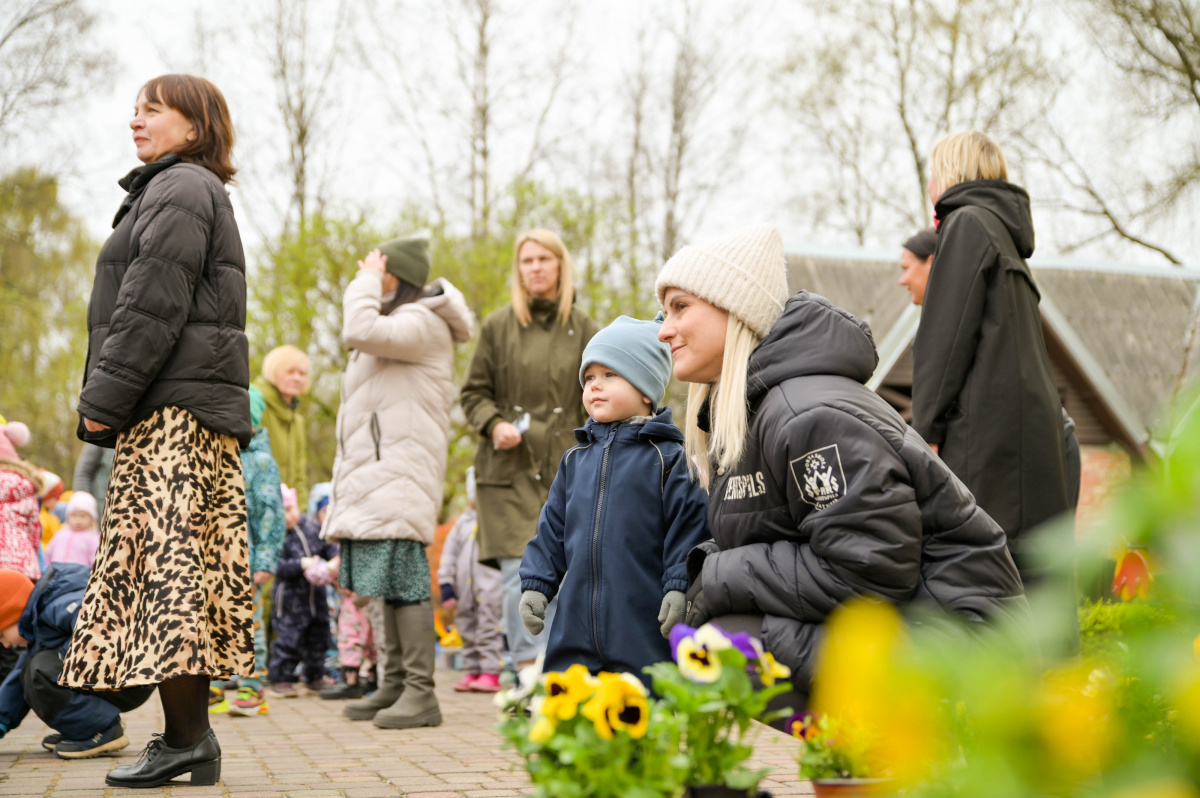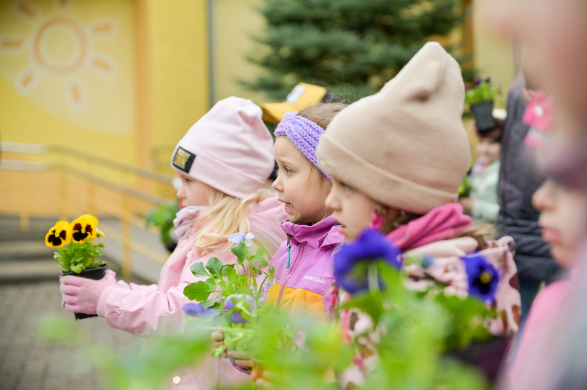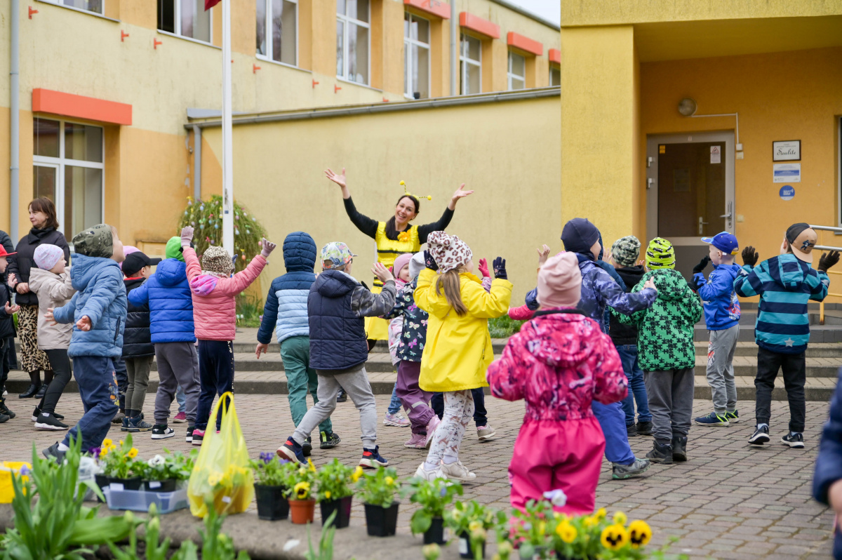 Pirmsskolas izglītības iestādes Saulīte bērni stāda atraitnītes