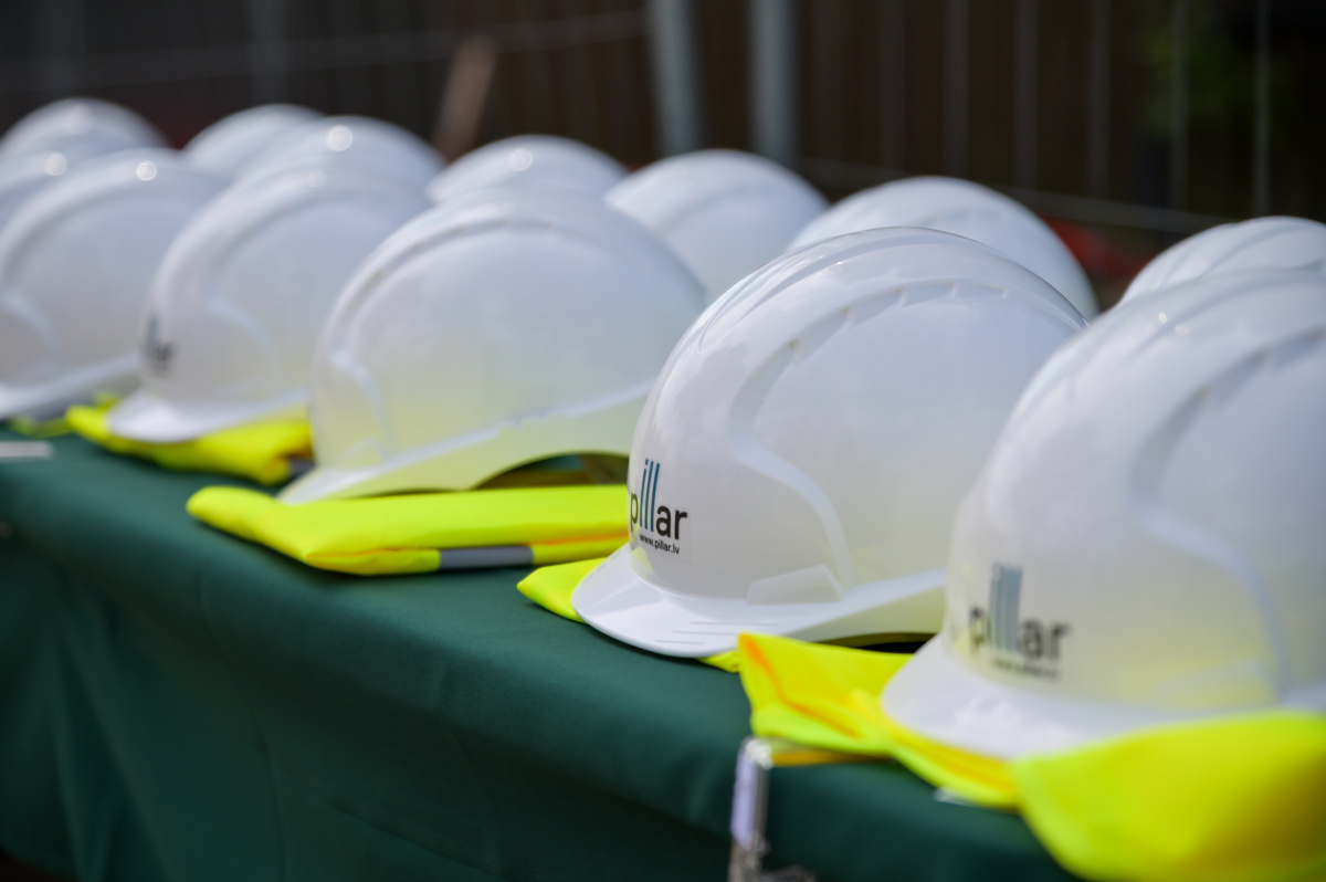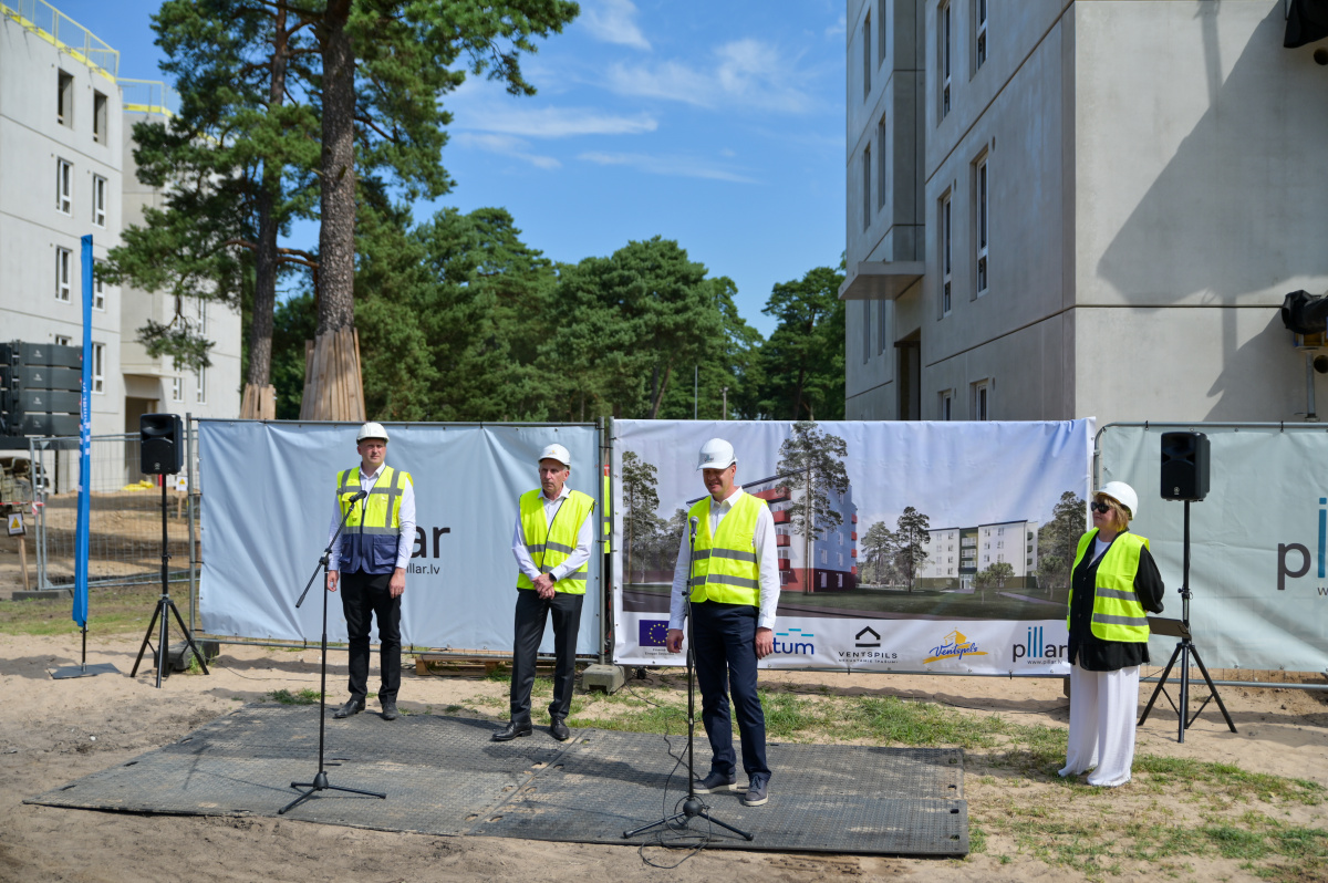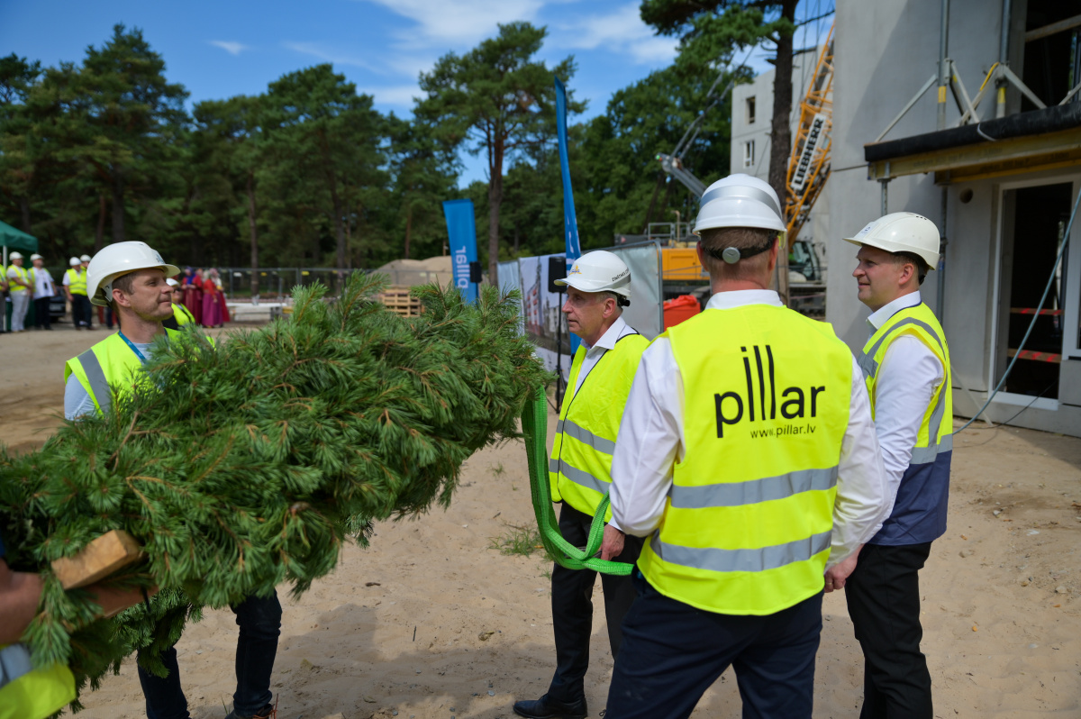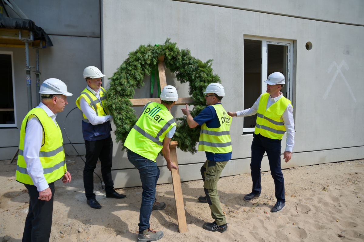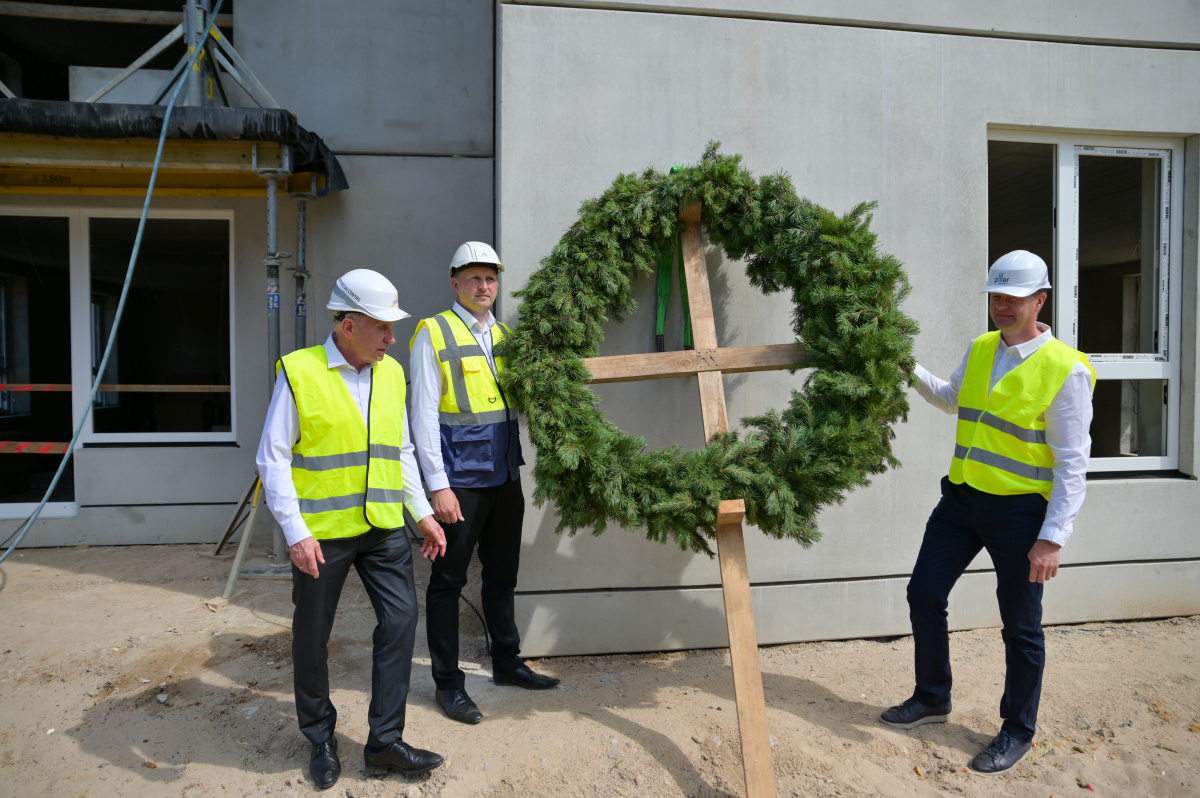 Spāru svētki divu 5-stāvu dzīvojāmo māju būvniecībā Saules ielā 122