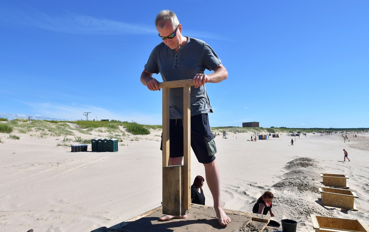 Pludmalē sāk veidot smilkšu skulptūras. Foto Aivars Ķesteris