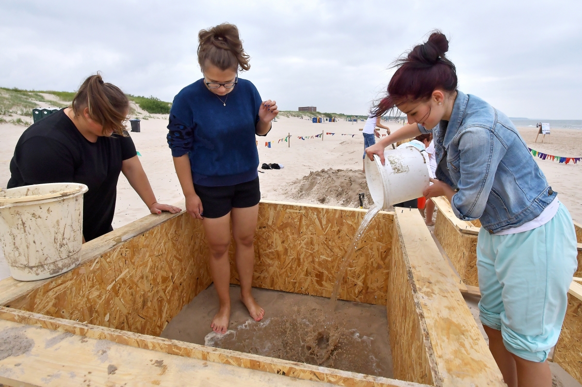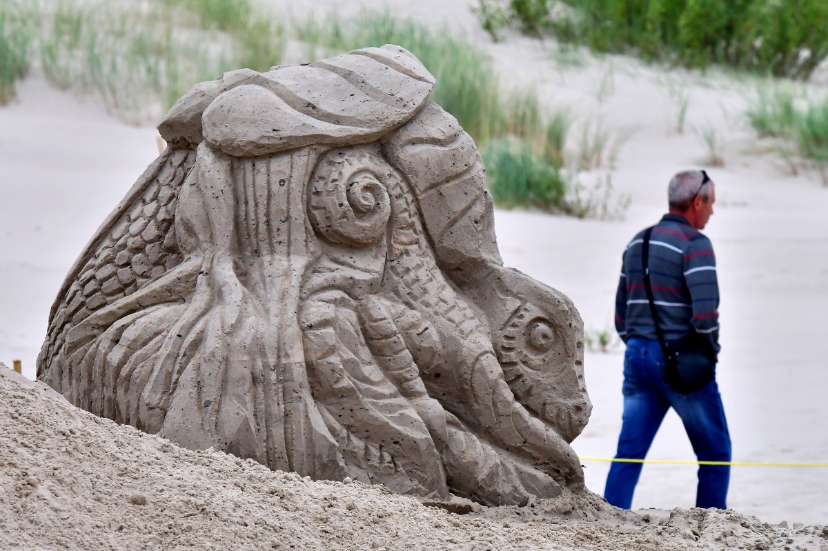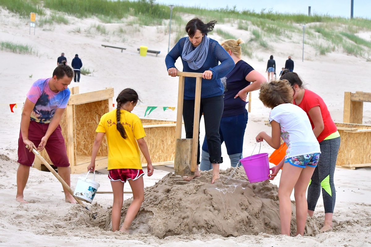 Smilšu skulptoru festivāla otrā diena. Foto Aivars Ķesteris