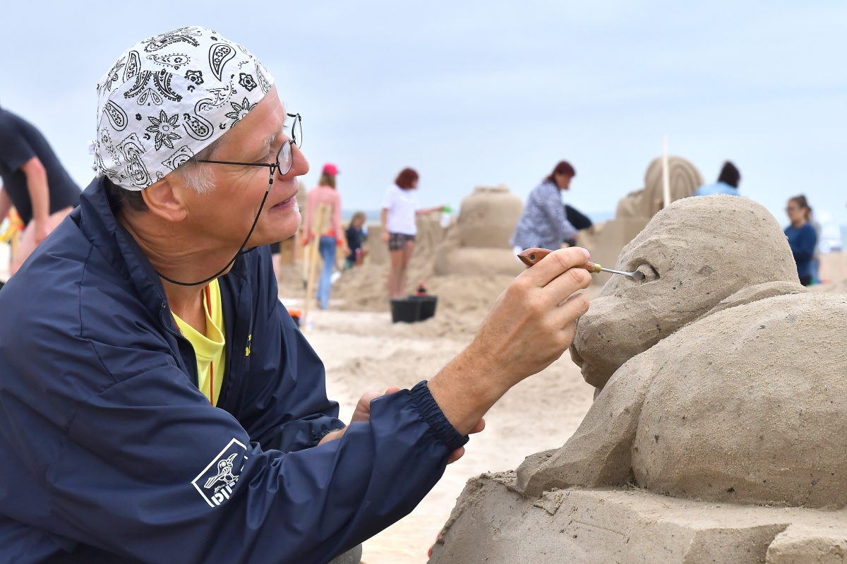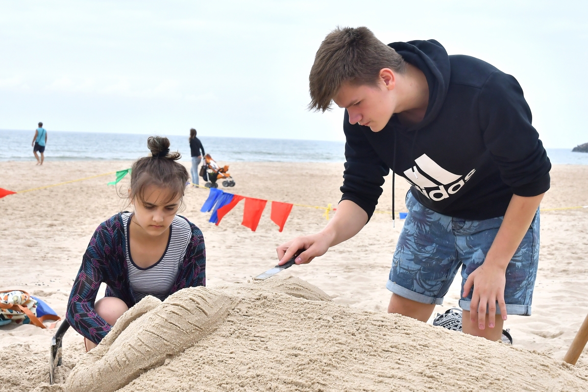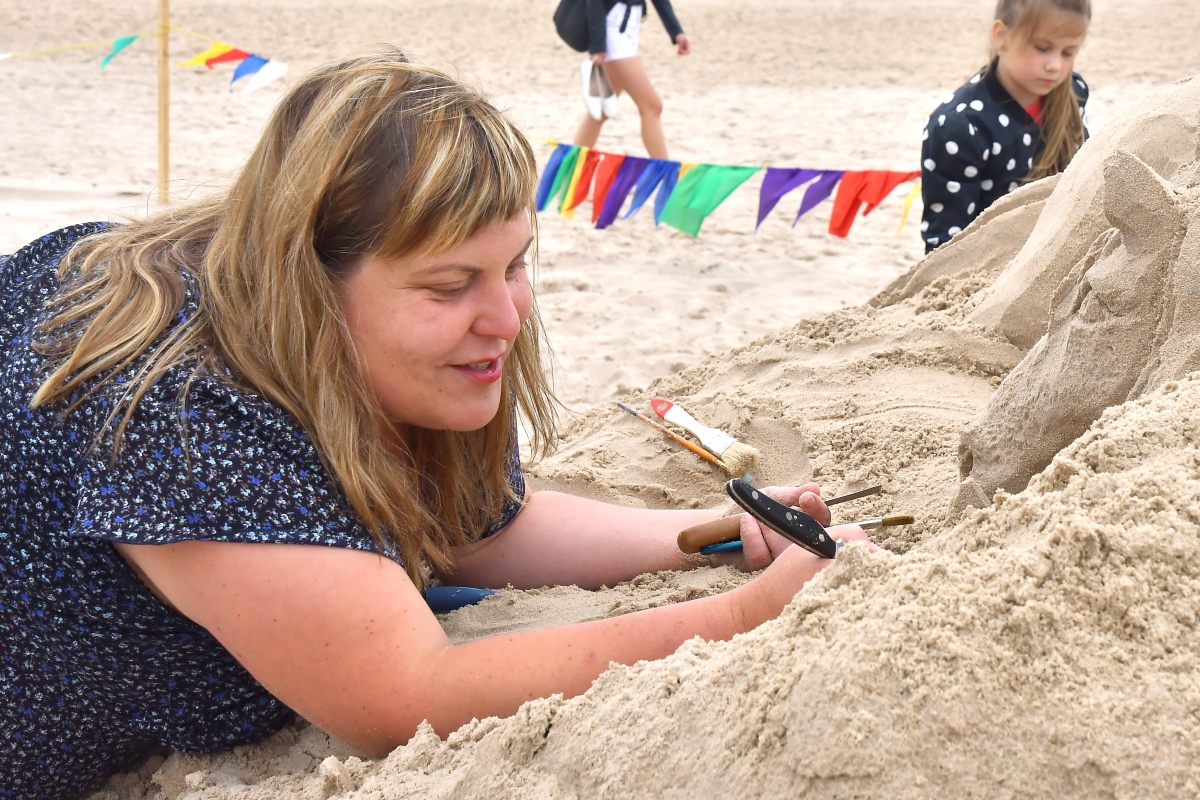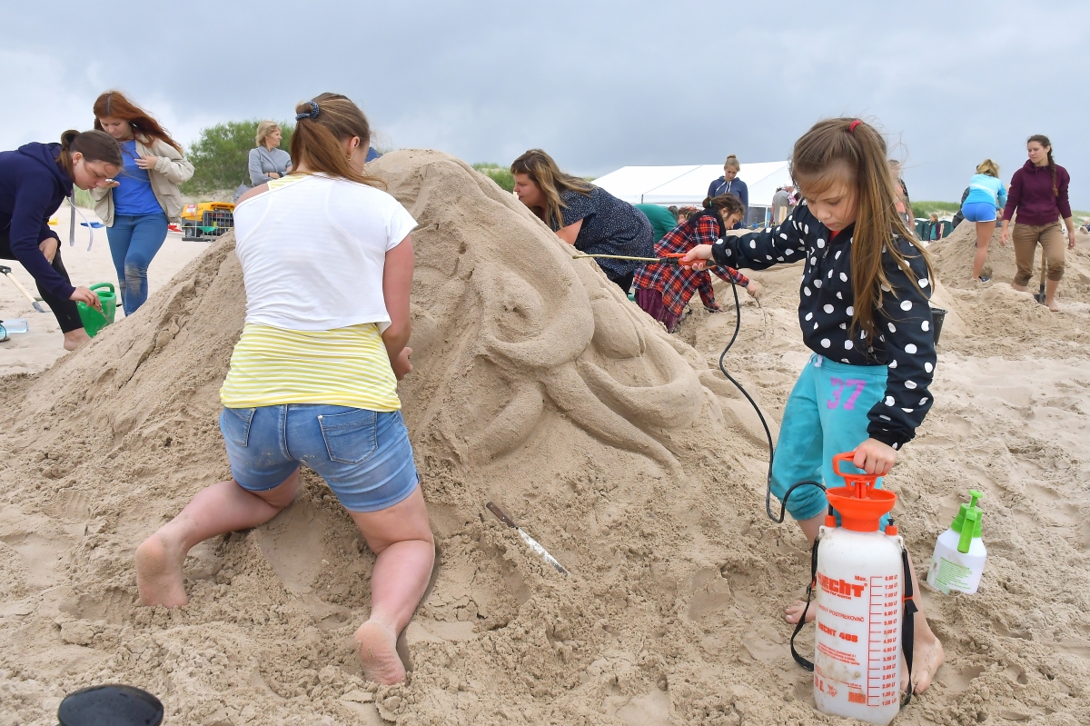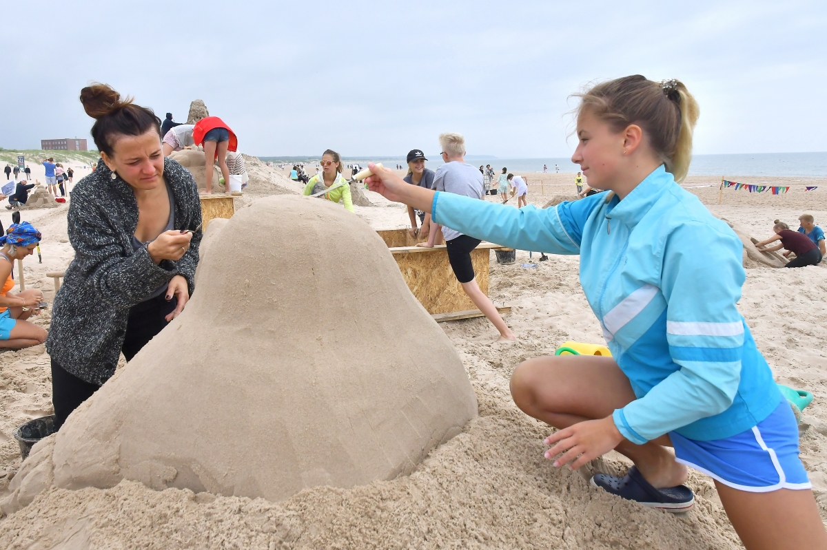 Smilšu skulptoru festivāla trešā diena. Foto Aivars Ķesteris
