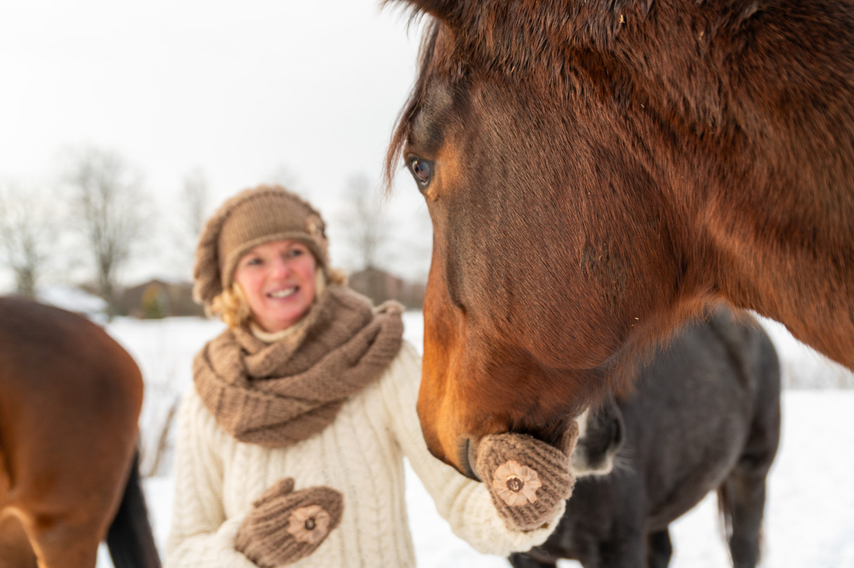 Tārgales pagasta Laimiņu mājās jātnieku sporta kluba Demora stallī saimnieko Gelinta Apse ar ģimeni.