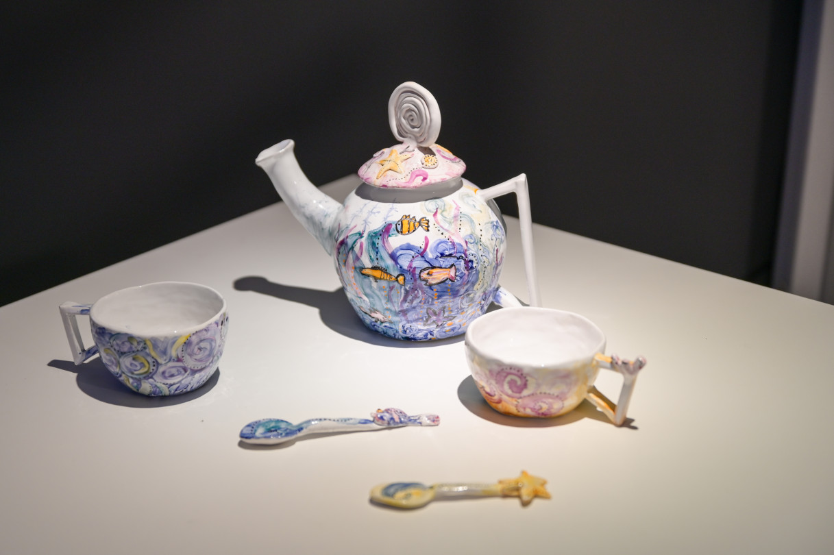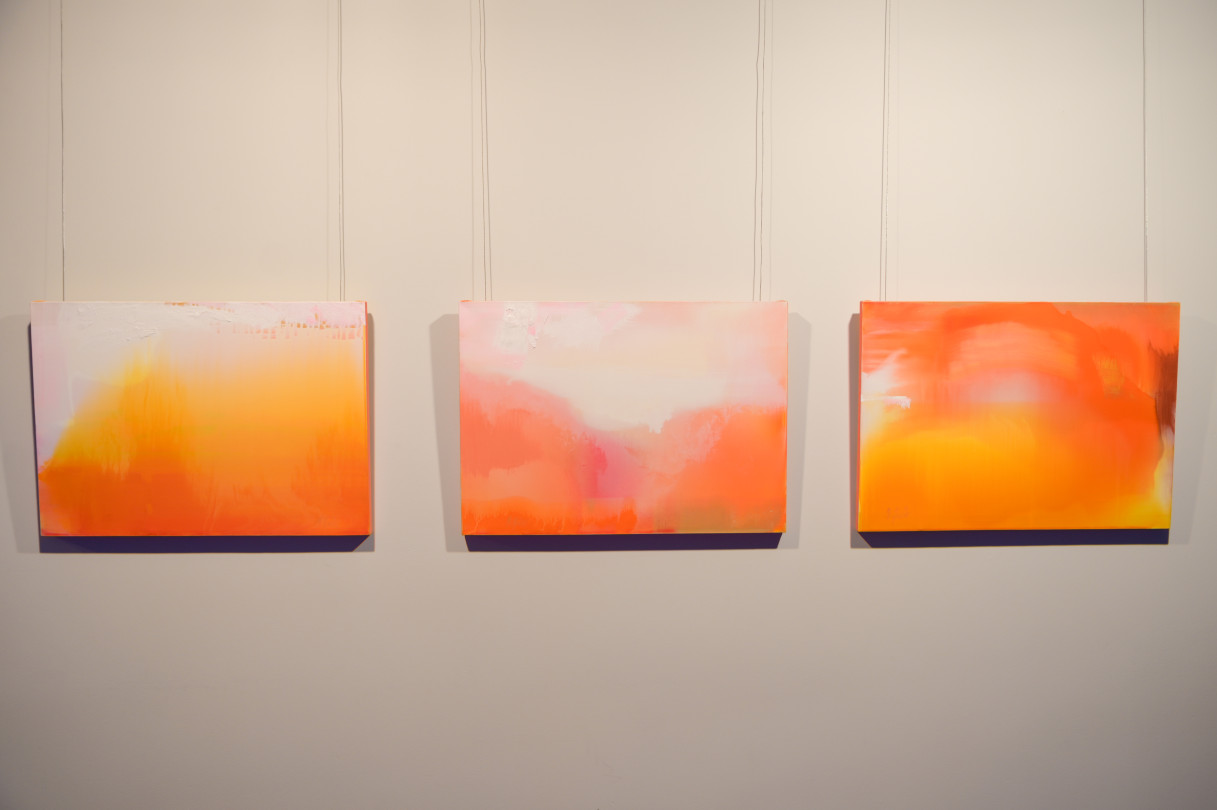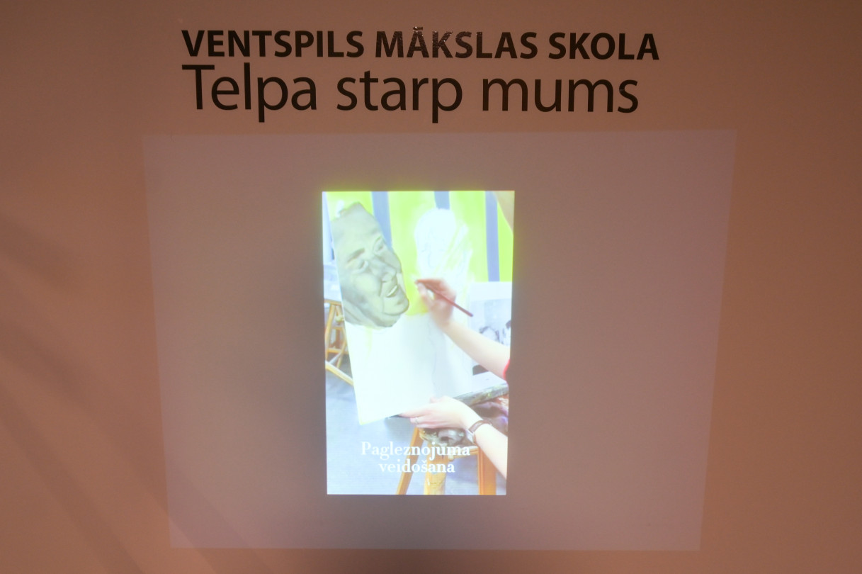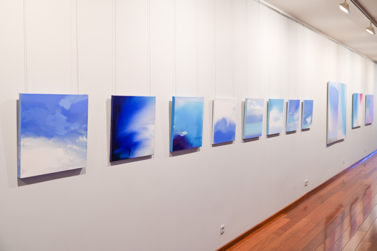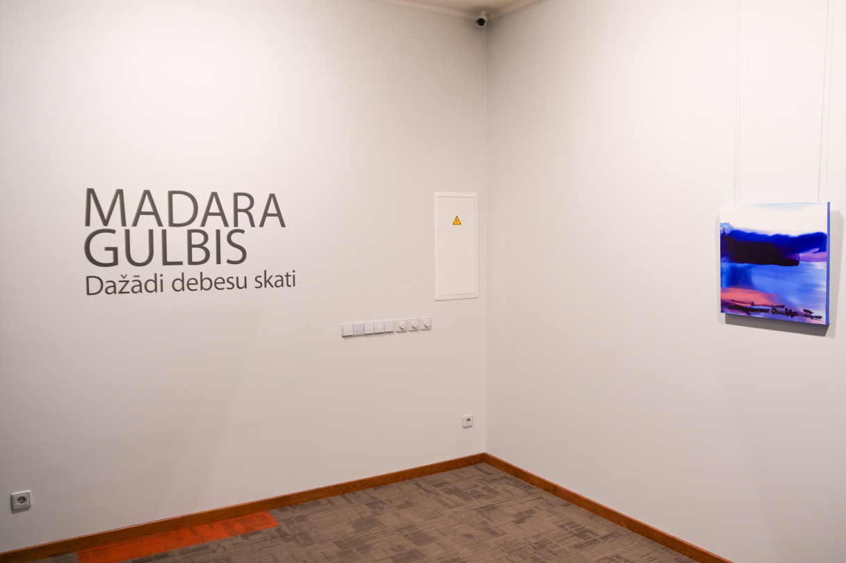 Ventspils Mākslas skolas absolventu darbu izstāde Telpa starp mums. Izstāžu zālē gleznotājas Madara Gulbis ekspozīcija Dažādi debesu skati.