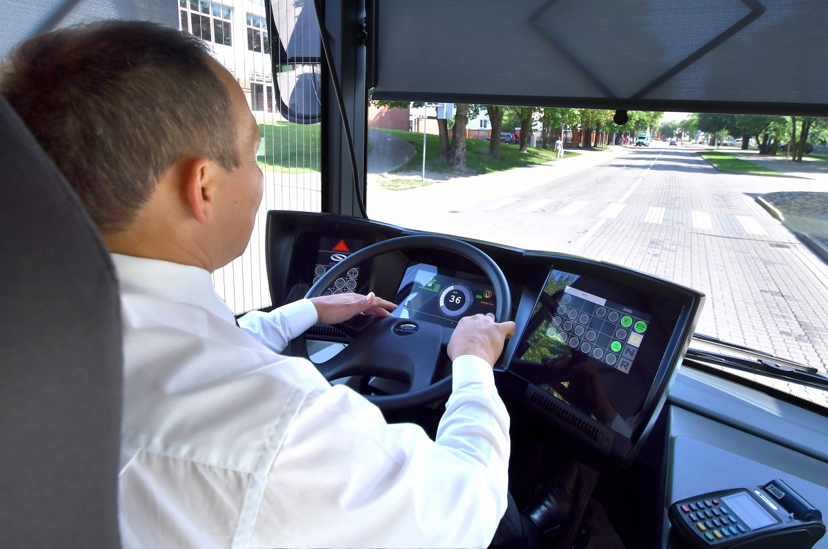 "Solaris" elektroautobusa izmēģinājuma braucienā. Foto Aivars Ķesteris