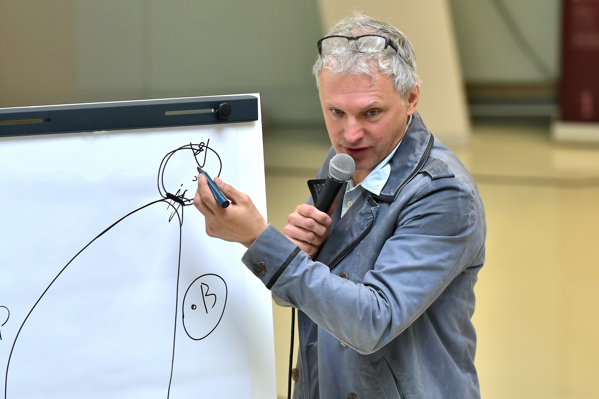 Pauls Timrots prezentē grāmatu "Dzelzceļš un vilcieni". Foto Aivars Ķesteris