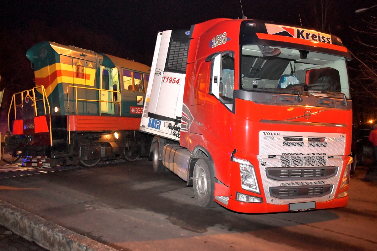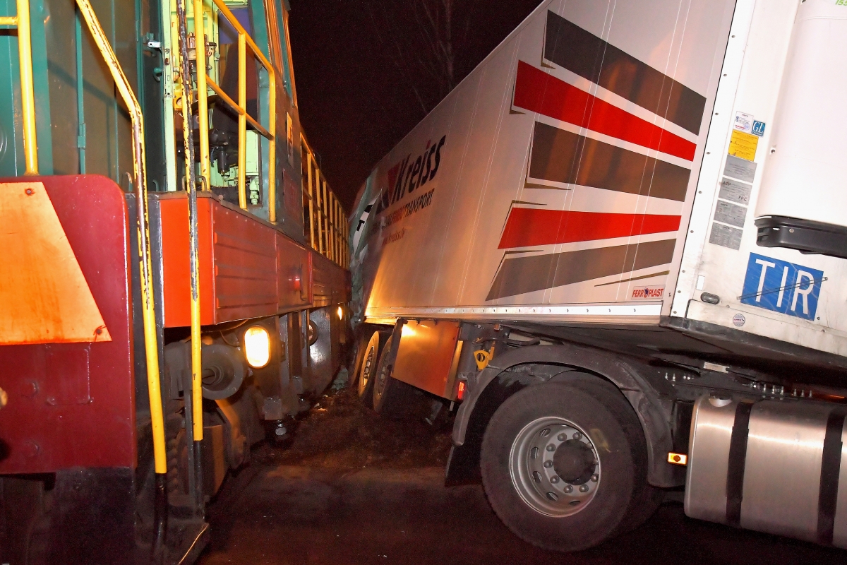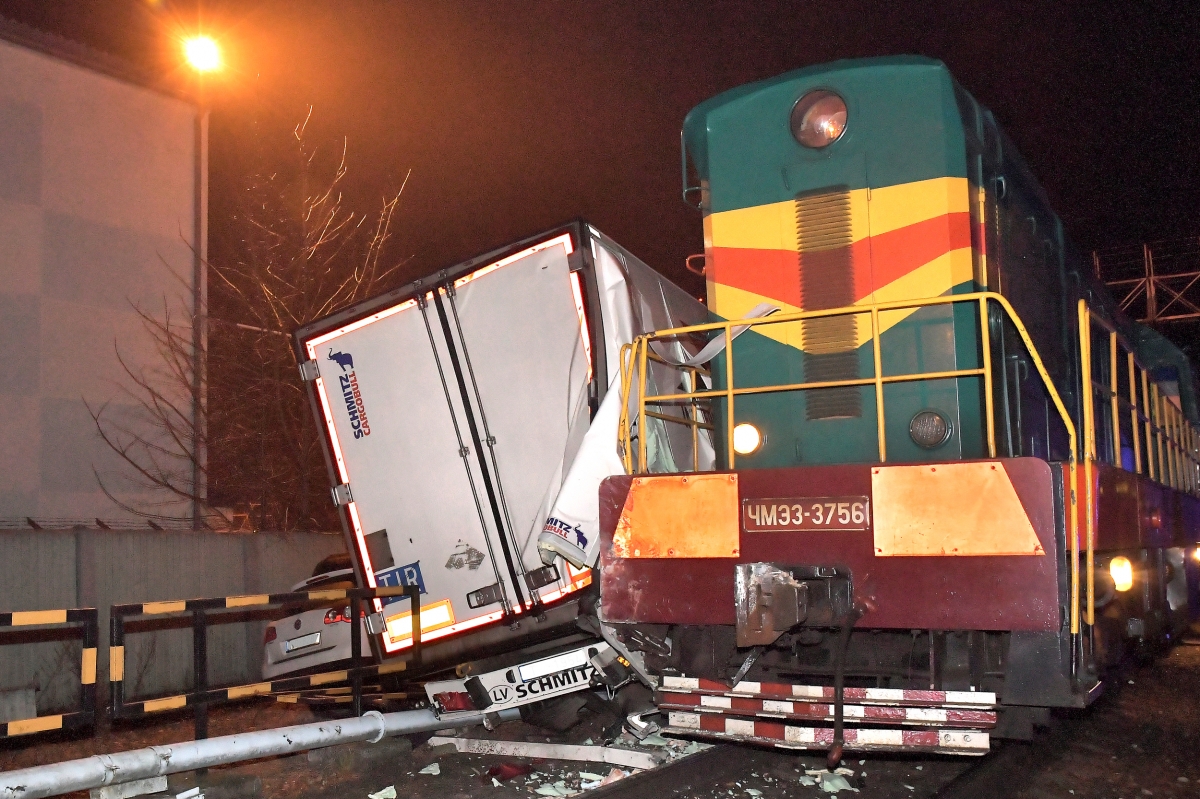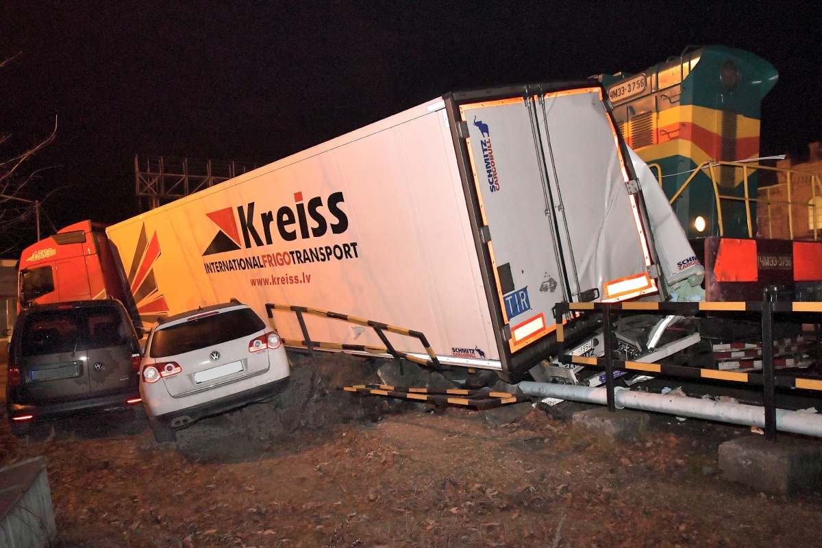 Kravas auto un vilciena sadursme Dzintaru ielā. Foto Aivars Ķesteris