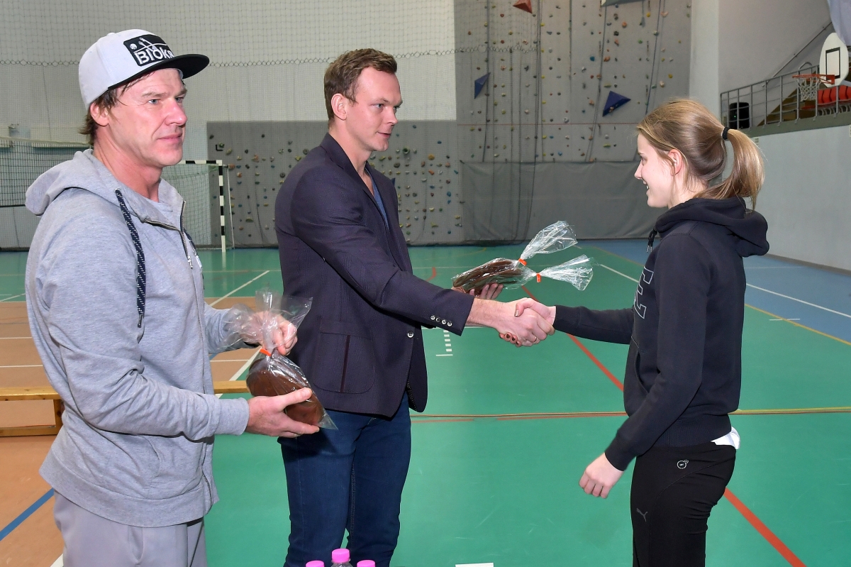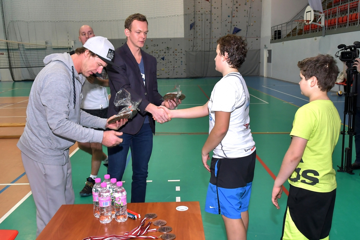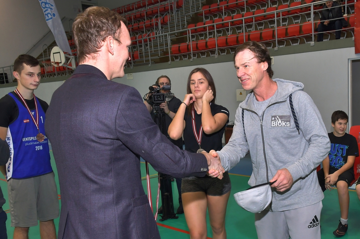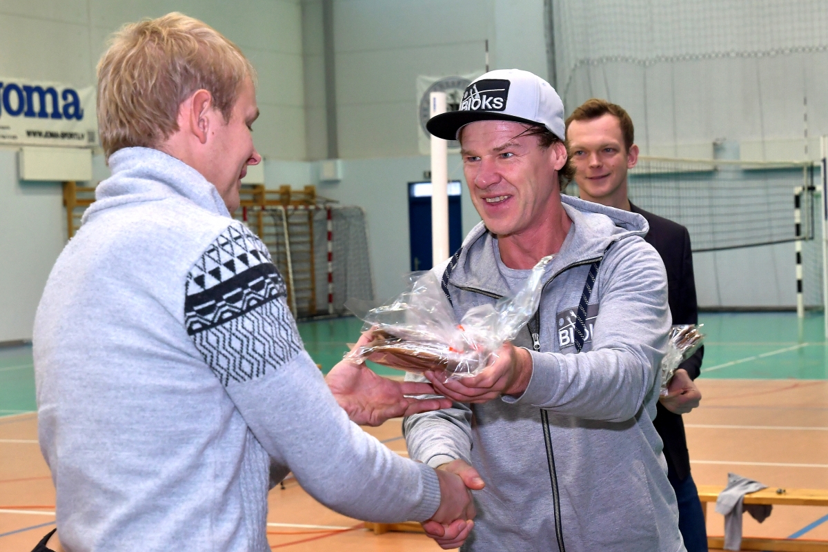 Tikšanās ar šobrīd labāko pludmales volejbolistu pasaulē Jāni Šmēdiņu. Foto Aivars Ķesteris