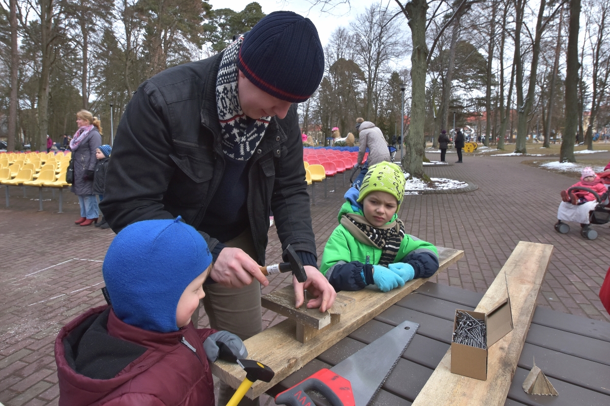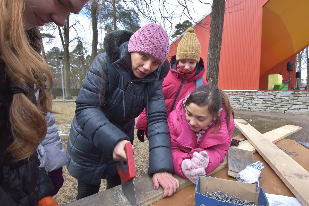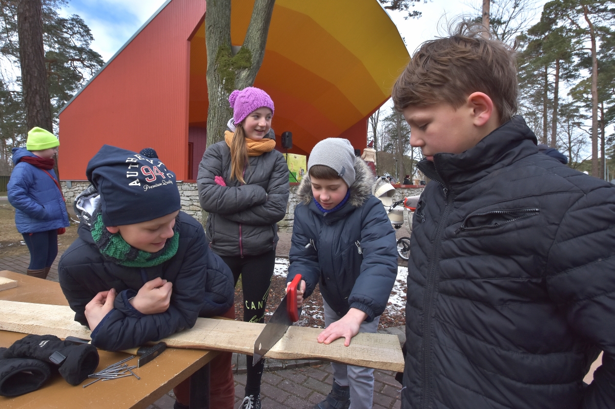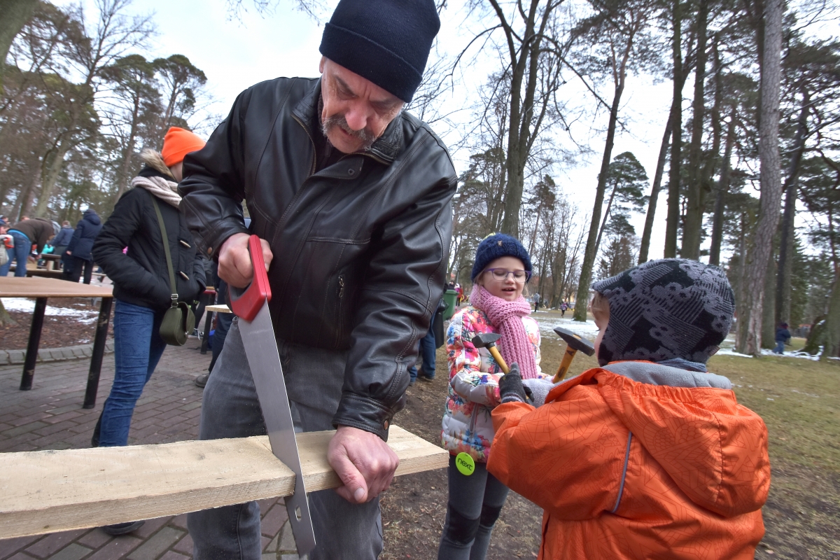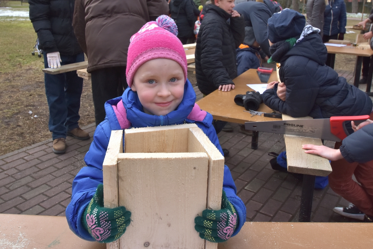 Putnu būrīšu izgatavošanas talka. FOTO: Aivars Ķesteris