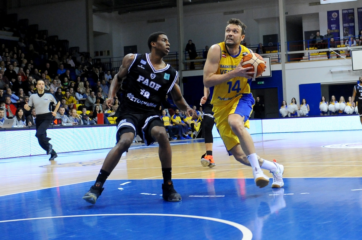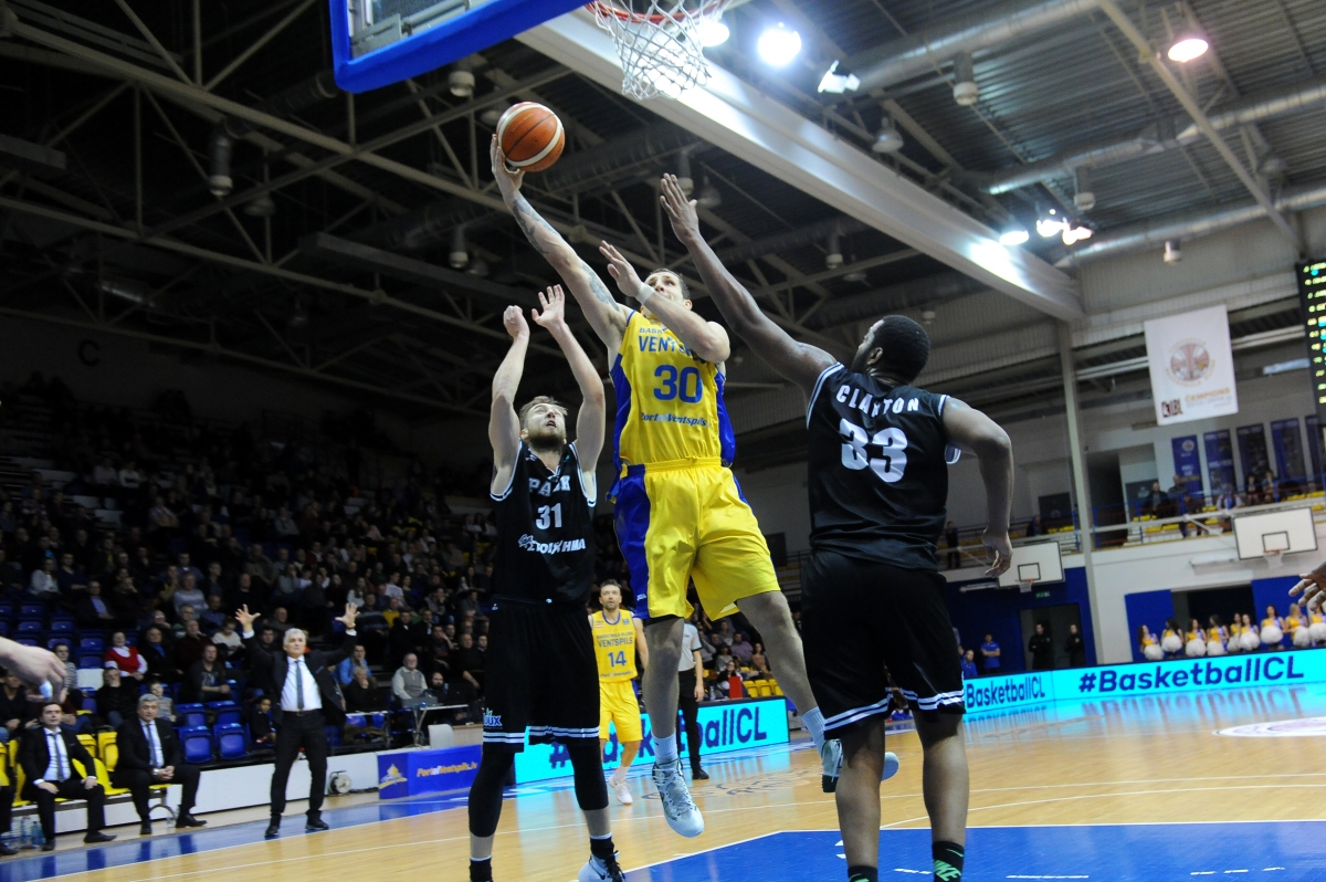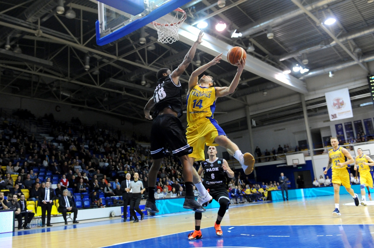 BK "Ventspils" Čempionu līgā smaga sagrāve pret PAOK. Foto: Juris Ģigulis
