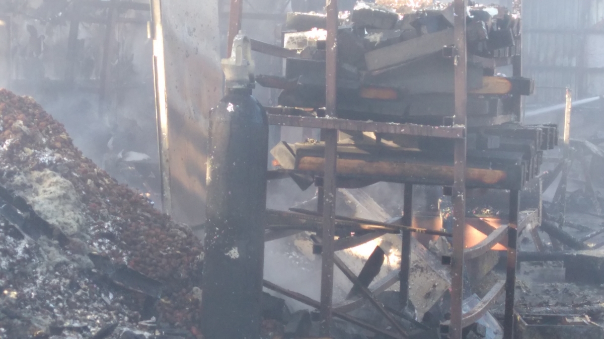 Ugunsgrēks Sia''SlaRus'' angārā. Aculiecinieka foto.