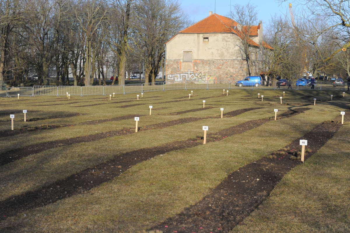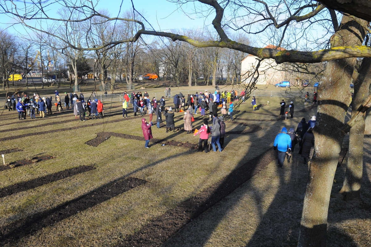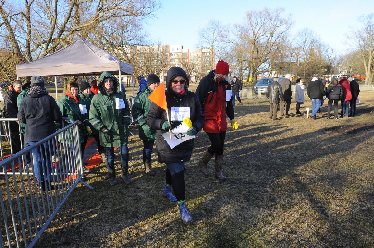 Ventspilnieki aizvada sniegpulkstenīšu stādīšanas Ginesa rekorda ģenerālmēģinājumu. Foto: Juris Ģigulis