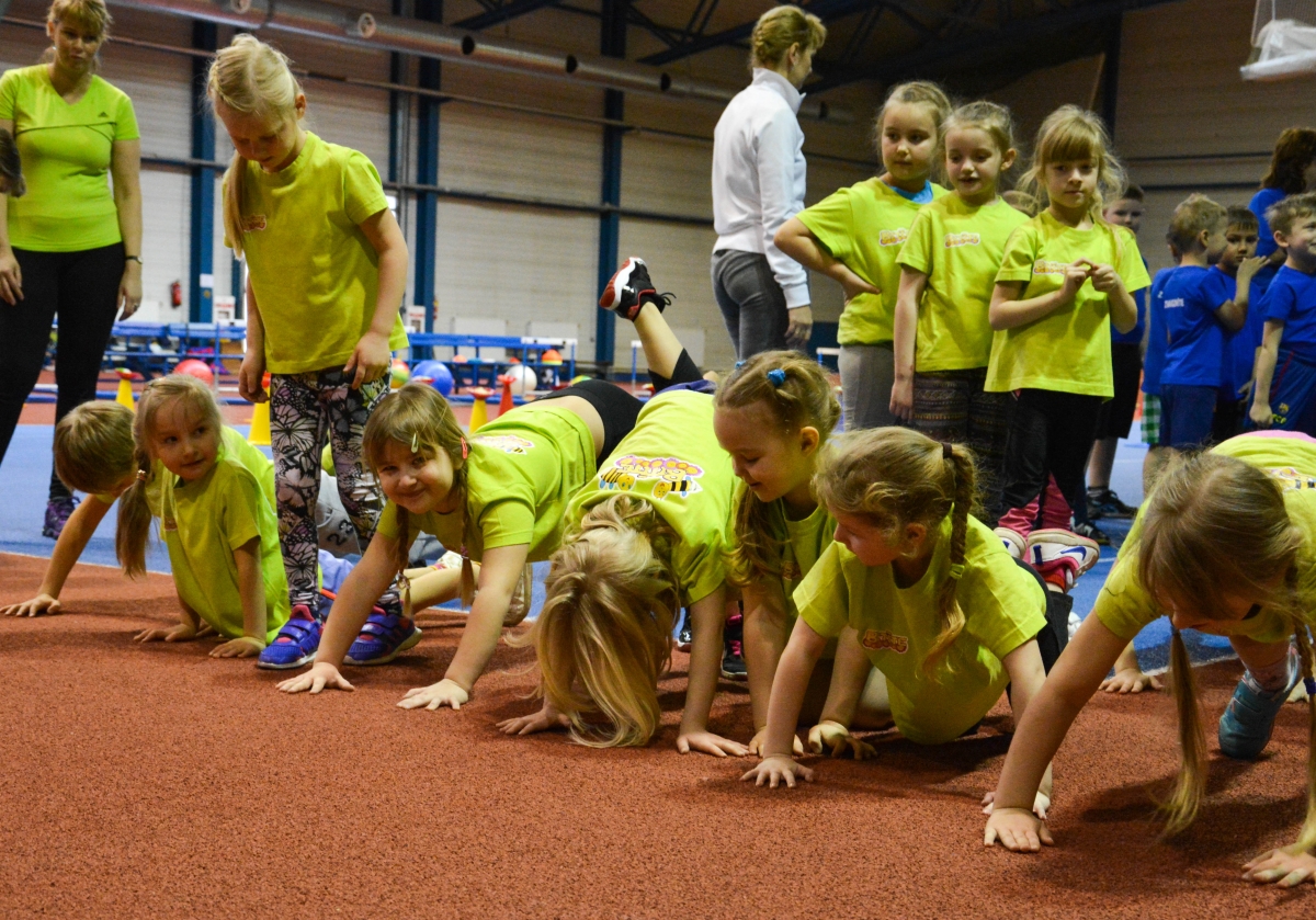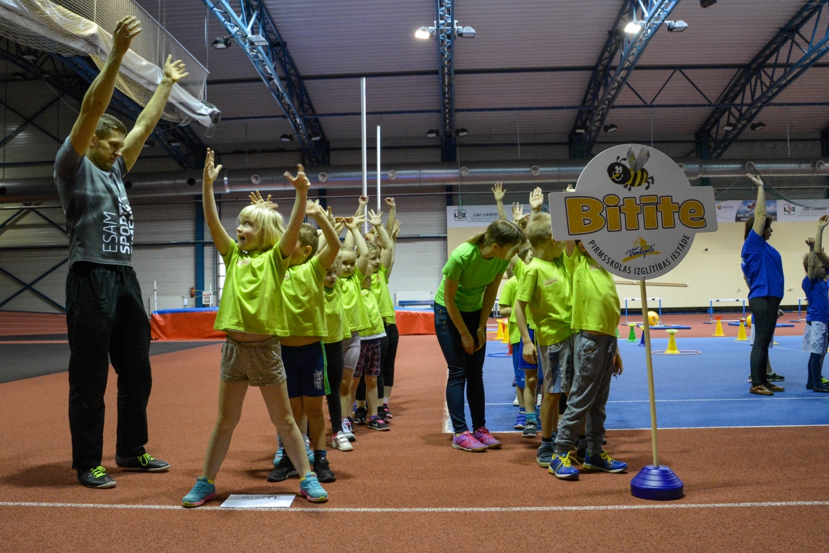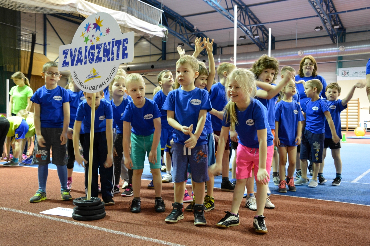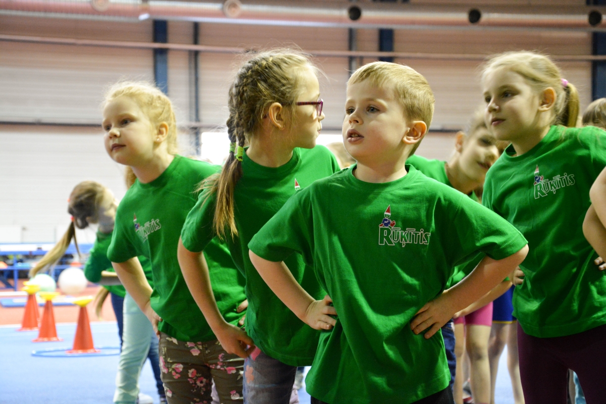 Pirmsskolas izglītības iestāžu audzēkņi tiekas Lieldienu sporta spēlēs. FOTO: Līga Rūde