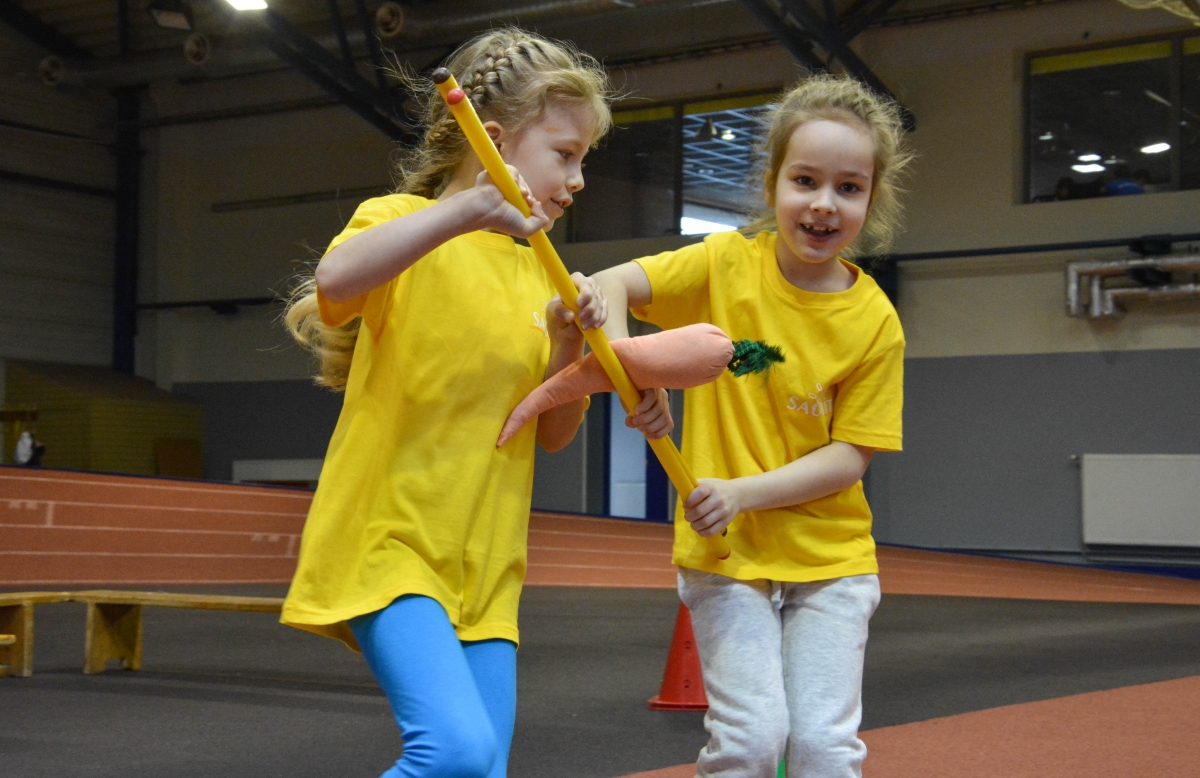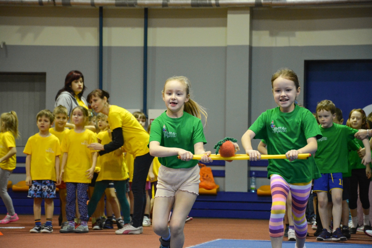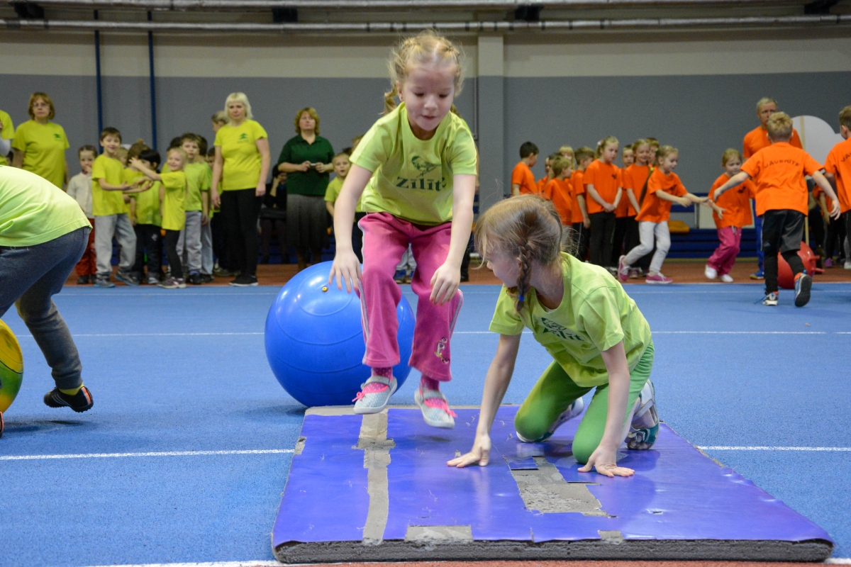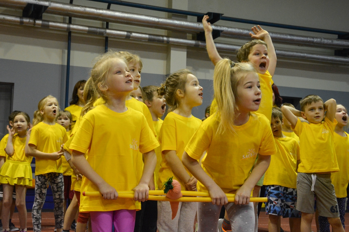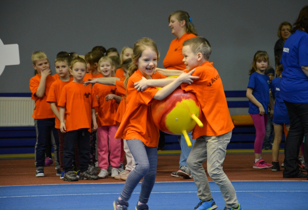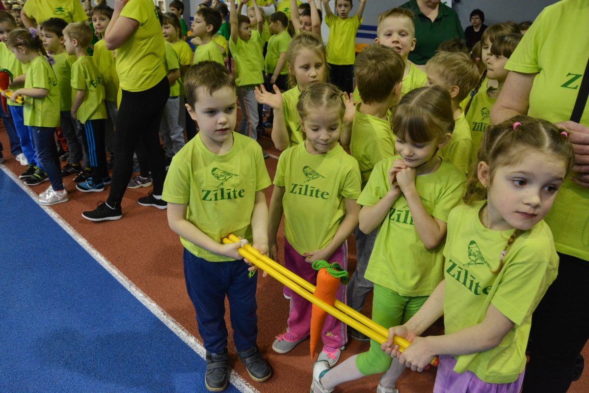 Pirmsskolas izglītības iestāžu audzēkņi tiekas Lieldienu sporta spēlēs. FOTO: Līga Rūde
