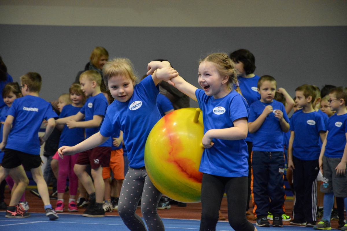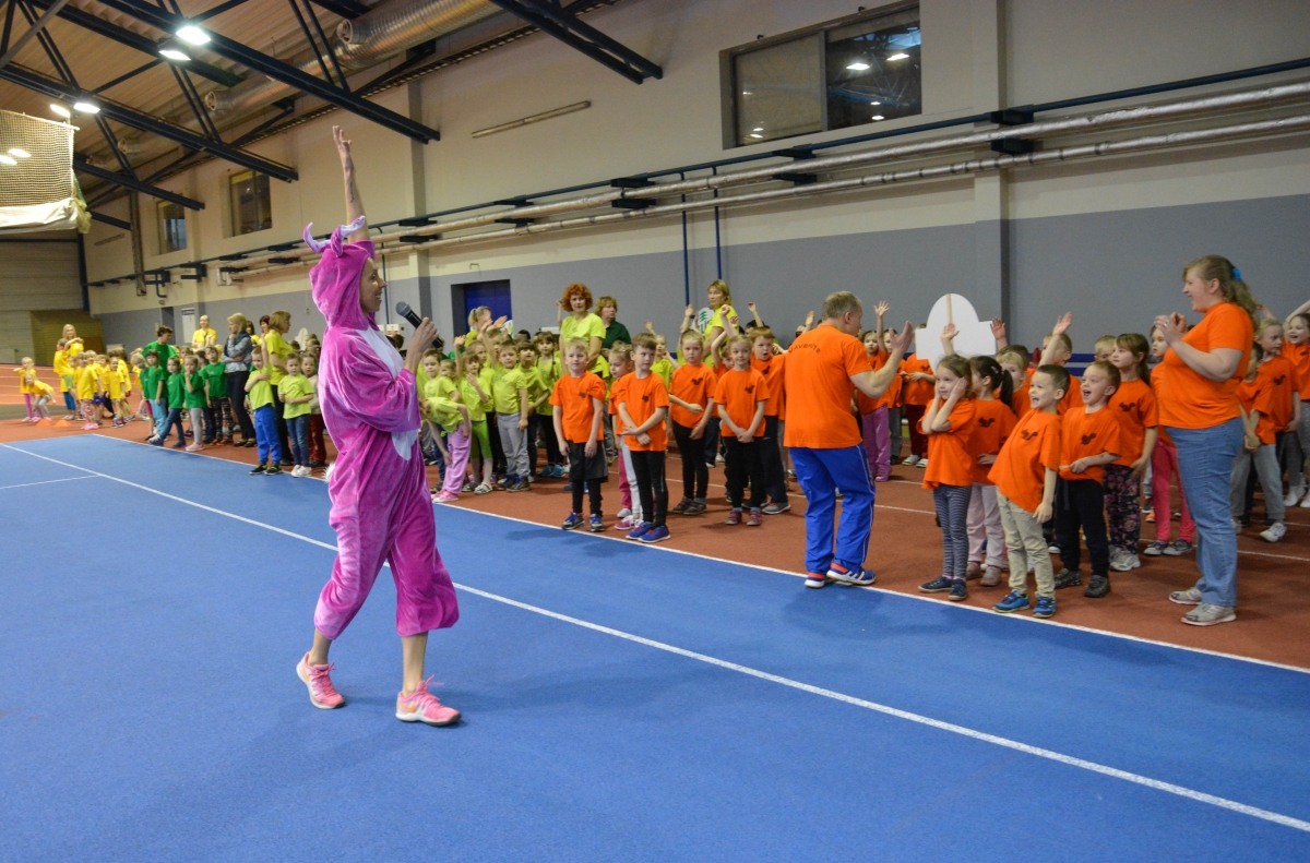 Pirmsskolas izglītības iestāžu audzēkņi tiekas Lieldienu sporta spēlēs. FOTO: Līga Rūde