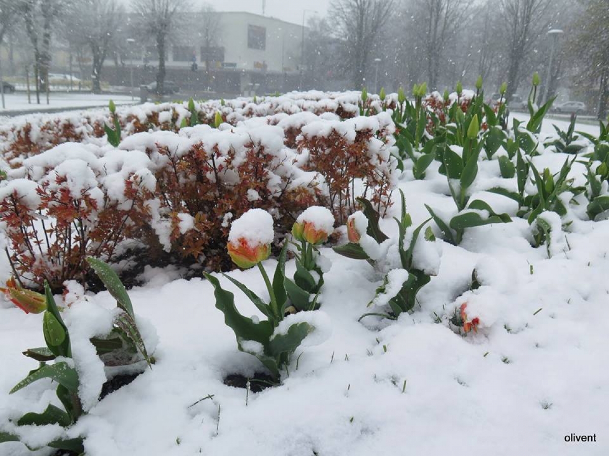 9. maija sniegs Ventspilī. Foto: Olga Zavadilika