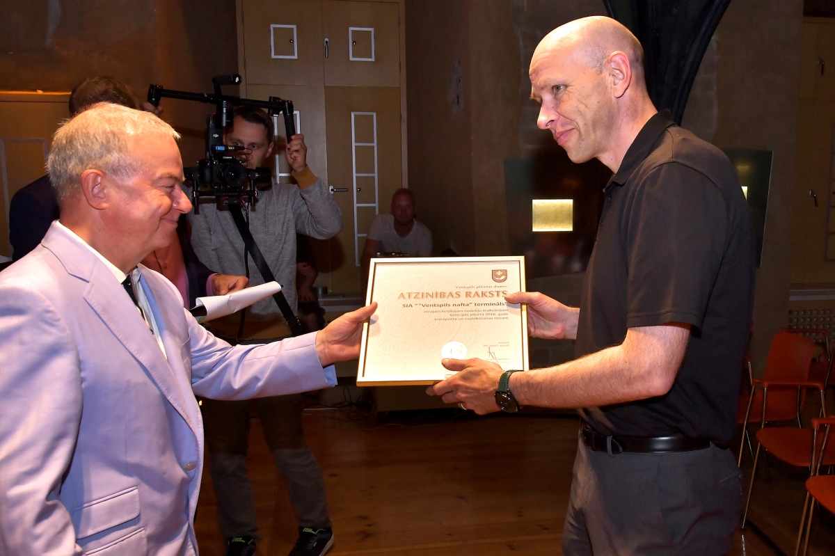 Pilsētas domes vadība godina lielākos nodokļu maksātājus. Foto: Aivars Ķesteris