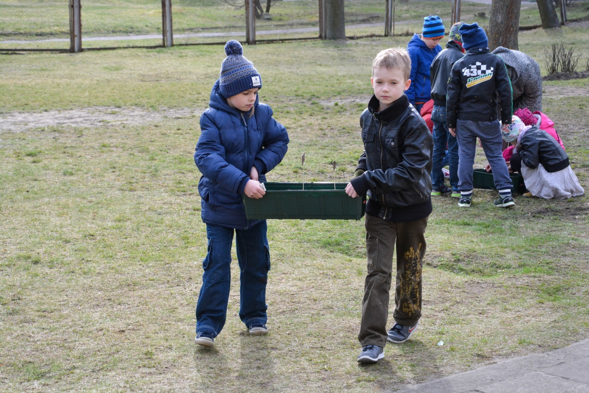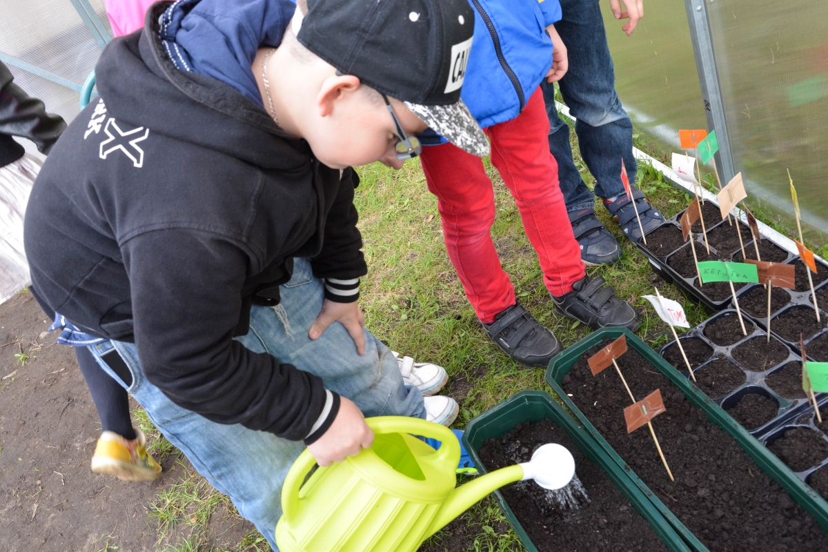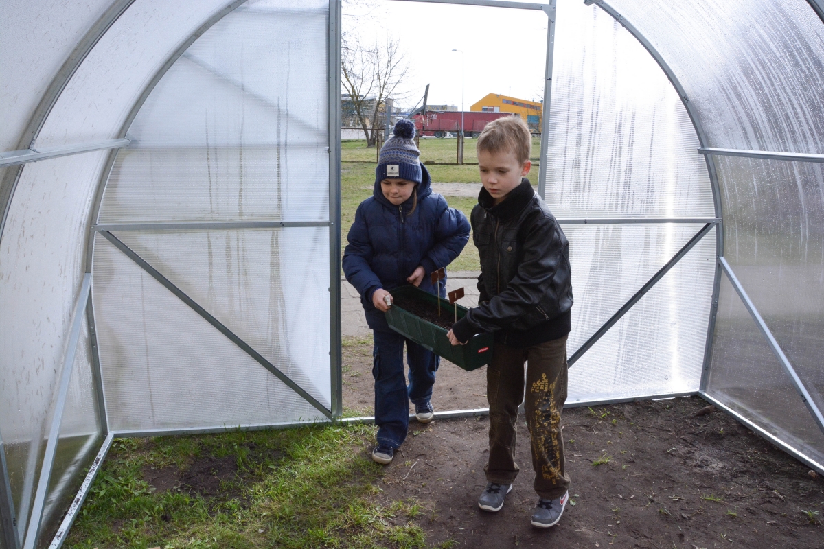 Ventspils Centra sākumskolas bērni sēj un stāda siltumnīcā. FOTO: Līga Rūde