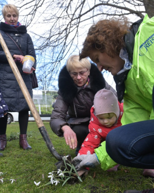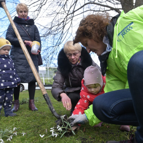 Sniegpulkstenīšu talka Dzirnavu laukumā
