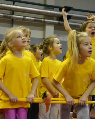 Pirmsskolas izglītības iestāžu audzēkņi tiekas Lieldienu sporta spēlēs. FOTO: Līga Rūde