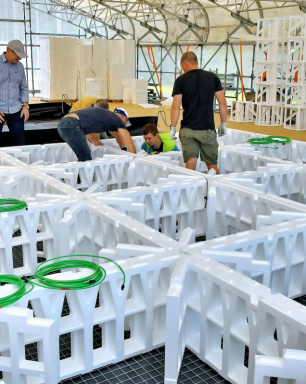 Irbenes radioastronomijas centra jaunās antenas montāža
