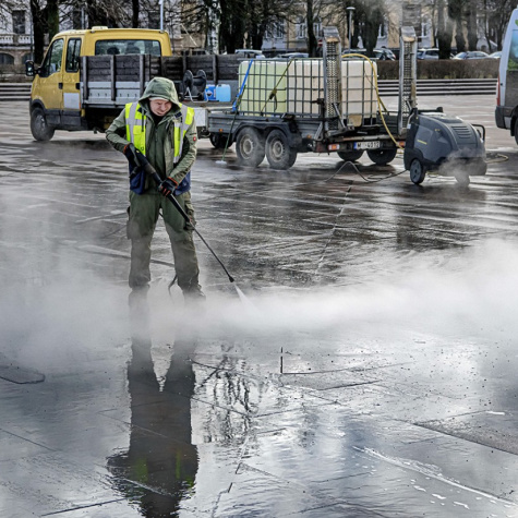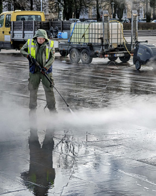 Pilsētā notiek parku un laukumu sakopšana