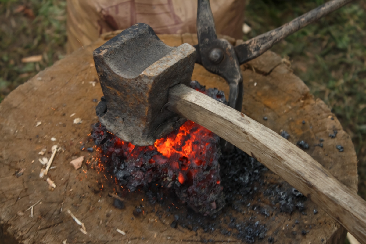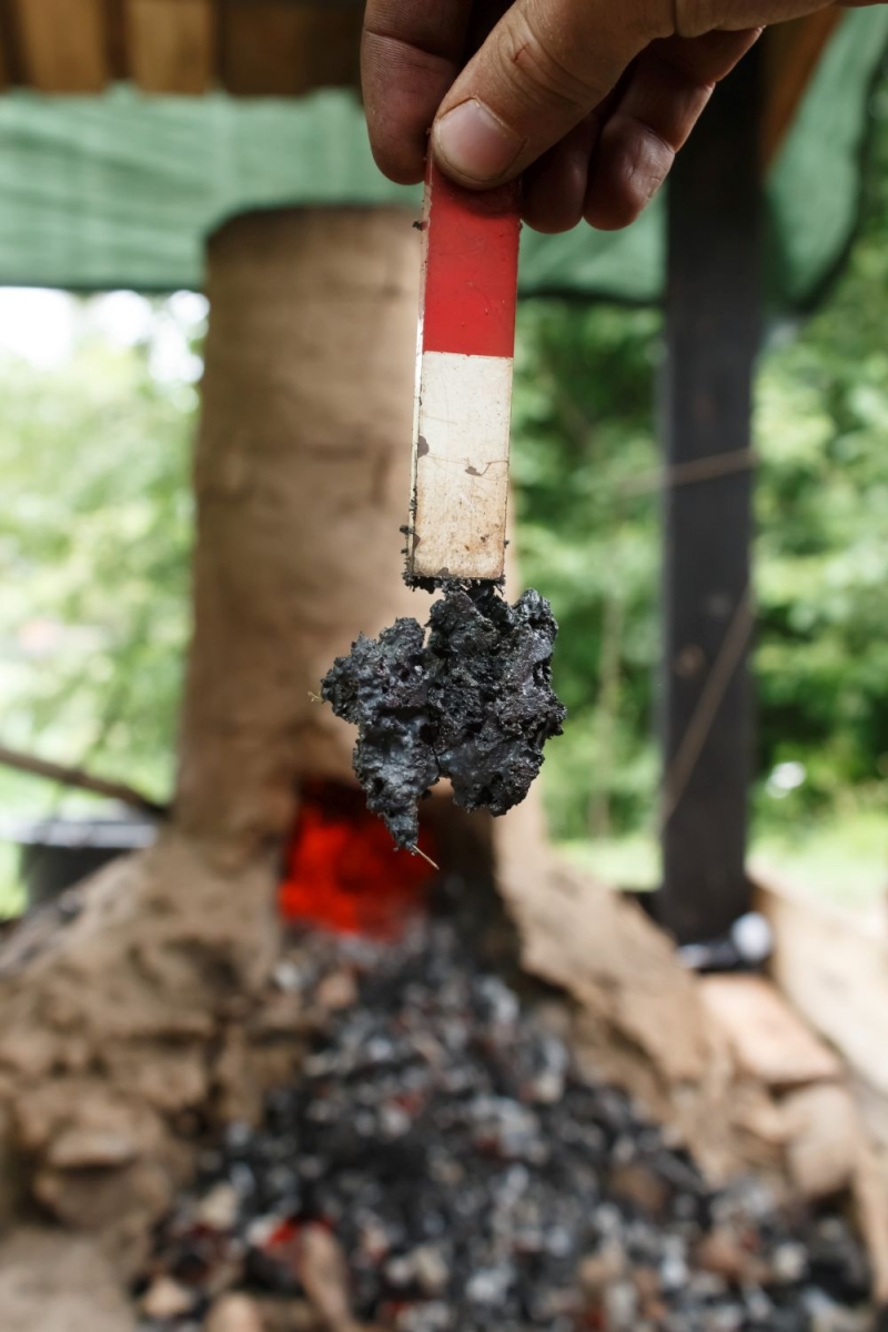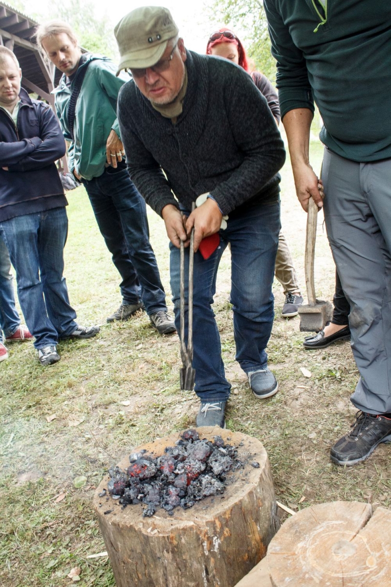Arheoloģiskais eksperiments: dzelzs iegūšana no purva rūdas. Foto: Līga Gabrāne, Ventspils muzejs