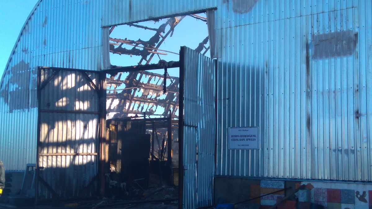 Ugunsgrēks Sia''SlaRus'' angārā. Aculiecinieka foto.