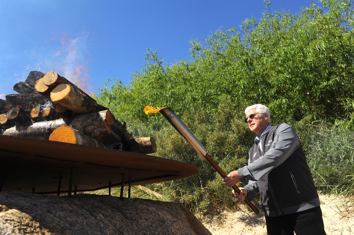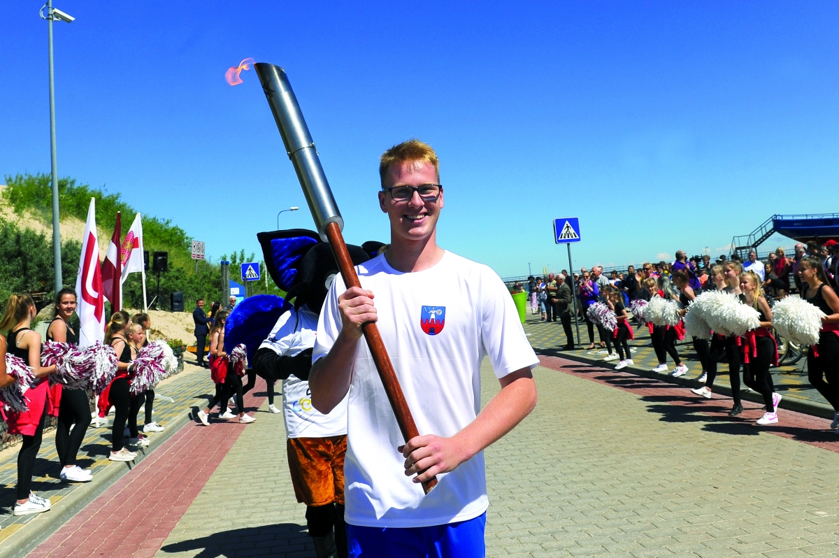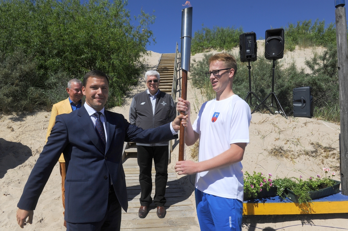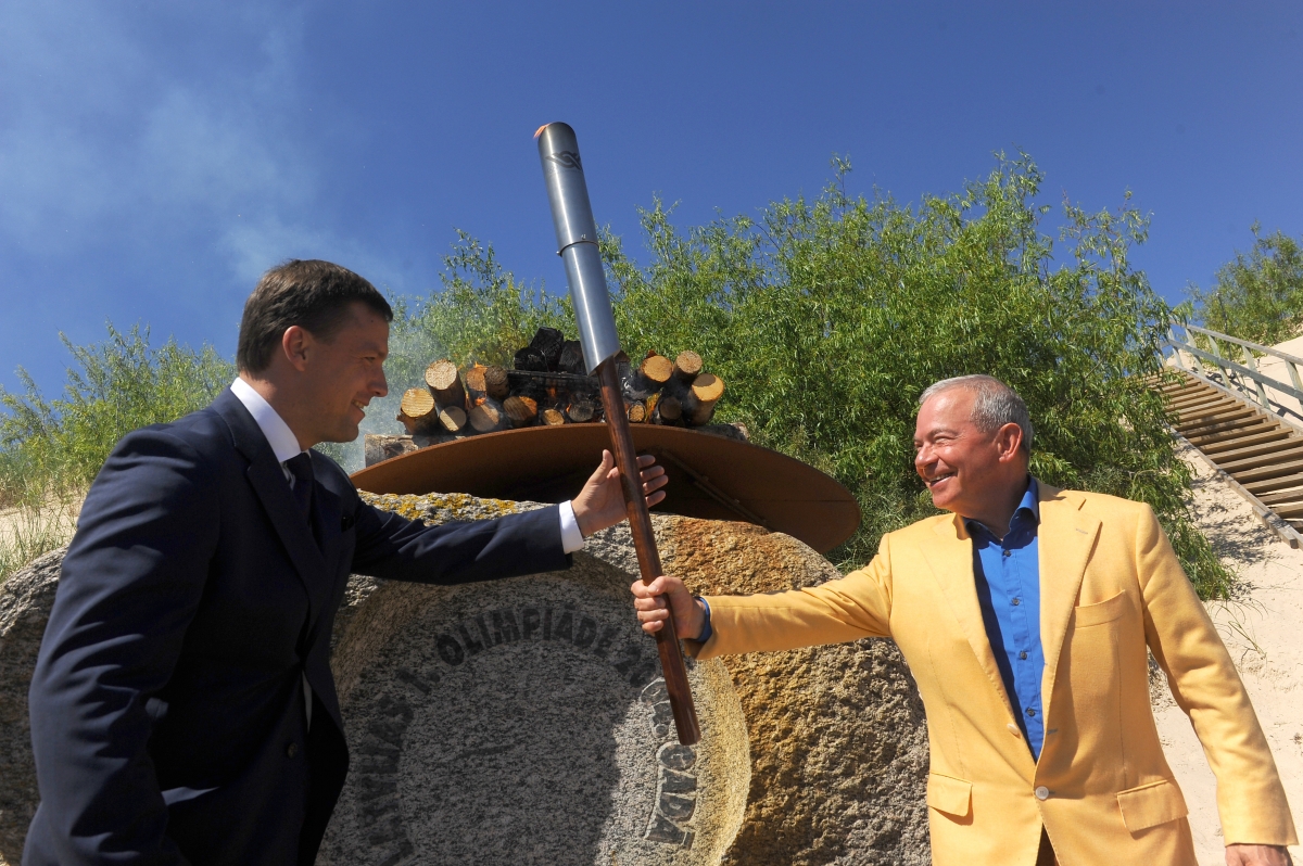 Iedegta Latvijas Jaunatnes vasaras Olimpiādes uguns. Foto: Juris Ģigulis