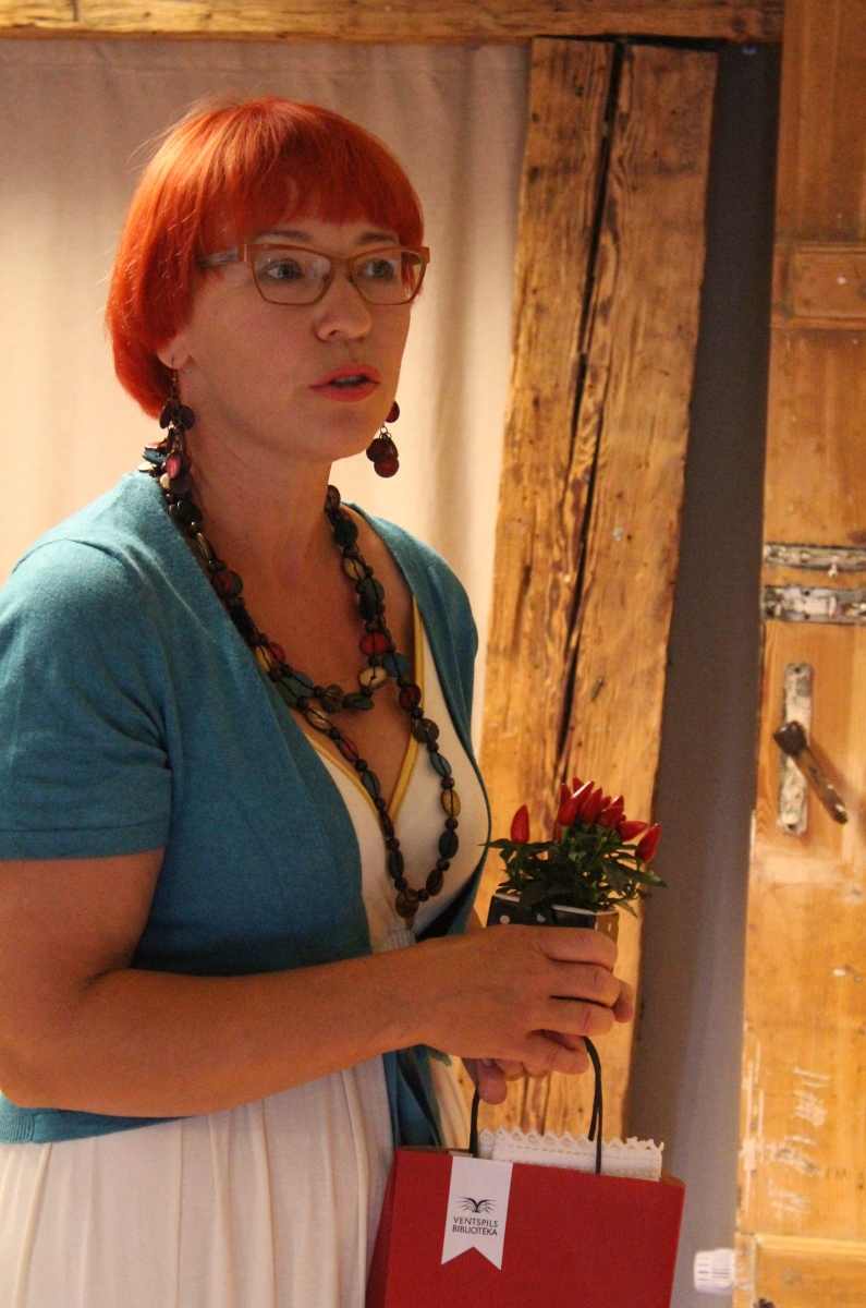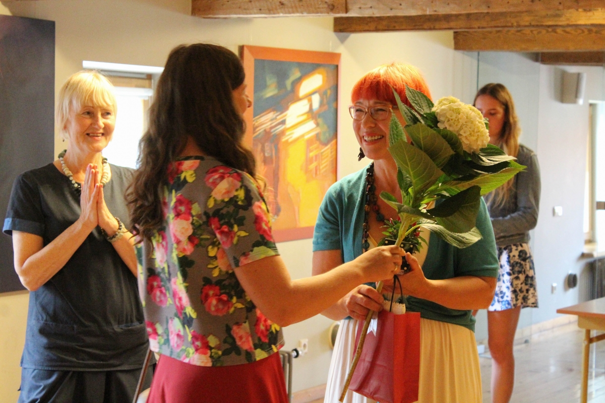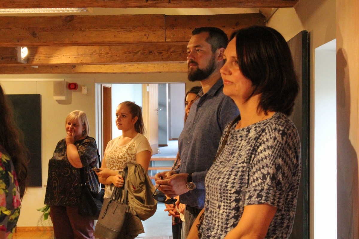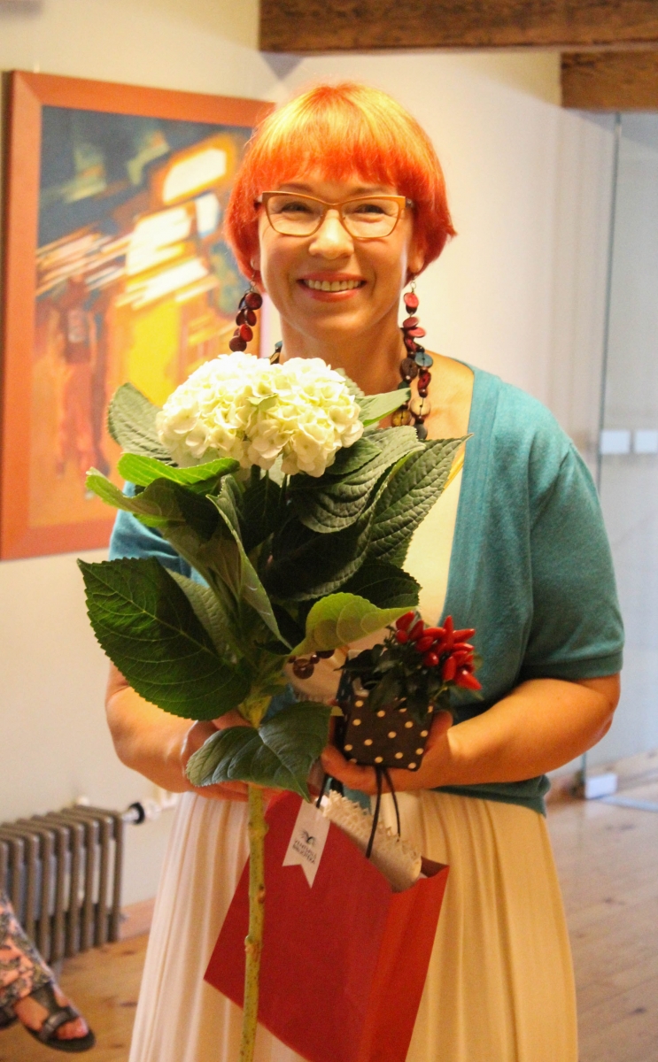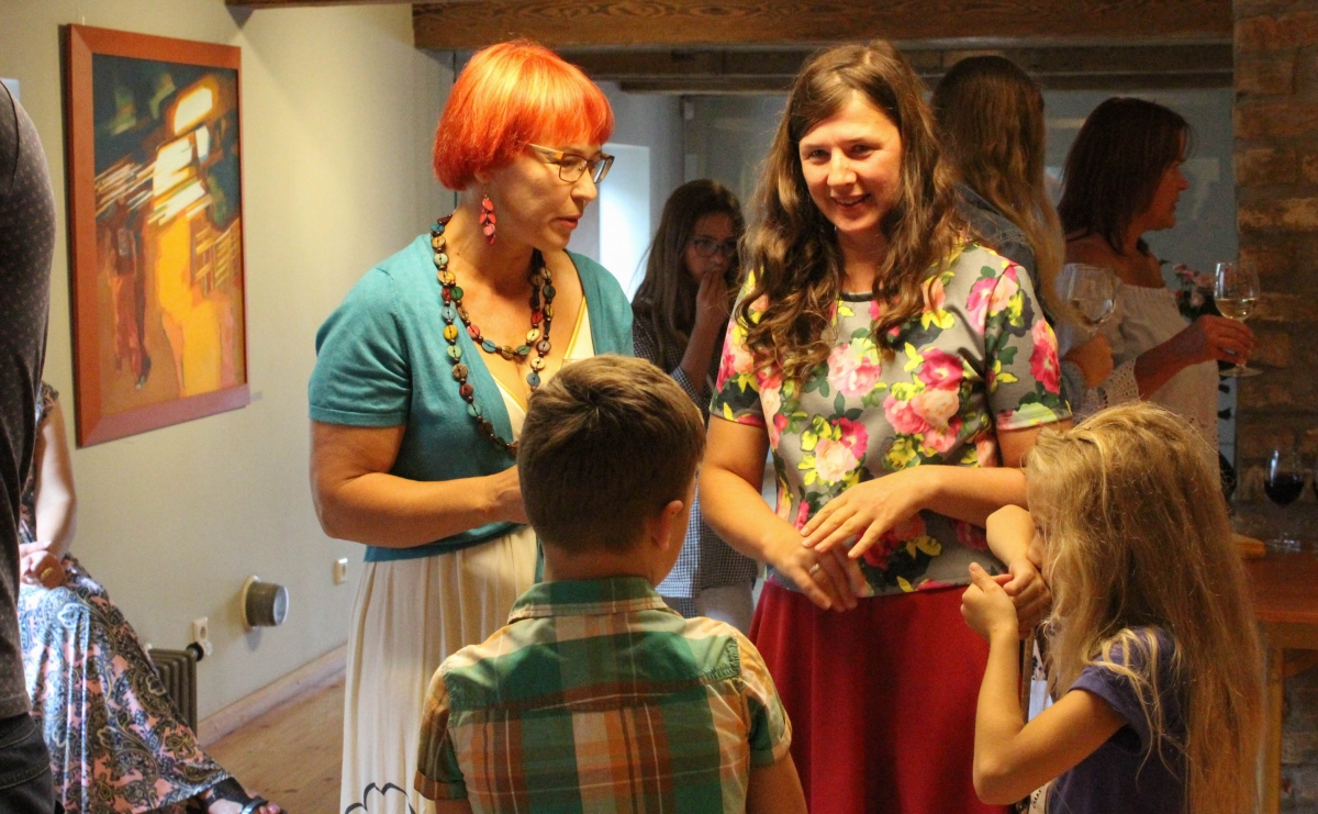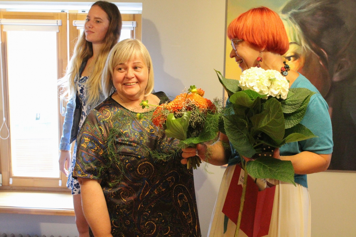 Daces Grundmanes gleznu izstādes "Dzīves tonalitāte" atklāšana Galvenajā bibliotēkā. Foto: Līga Rūde.
