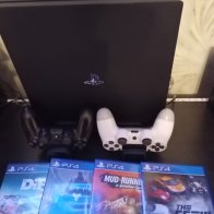 Pārdodu PS4 Pro līdzi divas pultis lādēšanas stacija kurā ietilpst dzesētājs PS4 un disku novietne plus līdzi 4spēles un 4ir uz cietā diska komplektā arī divas pultis cena 200€ varam nedaudz pakaulēties.