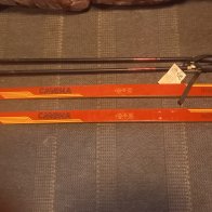 Jaunas slēpes + nūjas, slēpju garums 150 cm. 15 €.