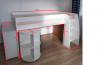 Piepildiet jūsu bērna sapni par divstāvu gultu drošākā veidā! Šī ir pusotrstāvīga, lai vecākam ir ērti pieiet, būt blakus un apčubināt savu bērnu. Gultas malas nodrošina pret izkrišanu.