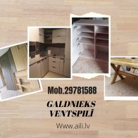Izgatavosim dārza mēbeles. Kā arī kāpnes, virtuves iekārtas, galdus, krēslus, bīdāmās durvis, iebūvējamos skapjus.