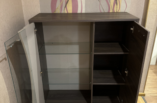 Pārdodas kumode ar stikla durvīm. Ventspils centrs. 35,00 eur. Pašizvešana. Otrais stāvs. Garums - 103cm., platums - 41cm., augstums - 114 cm.