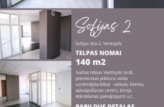 Īpašnieks iznomā modernas un gaišas telpas uzņēmējdarbībai Ventspils centrā – Sofijas ielā 2.