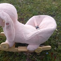 Mazlietots Lieldienu šūpuļ zaķis, var izmantot kā velkamus ratiņus.