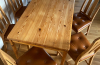 • Komplekts sastāv no priedeskoka galda 120x75x74 un sešiem priedeskoka krēsliem, sēdeklis apvilkts ar ādu. Sēdekļa augstums 48 cm, atzveltnes augstums 96 cm. Normāls no...