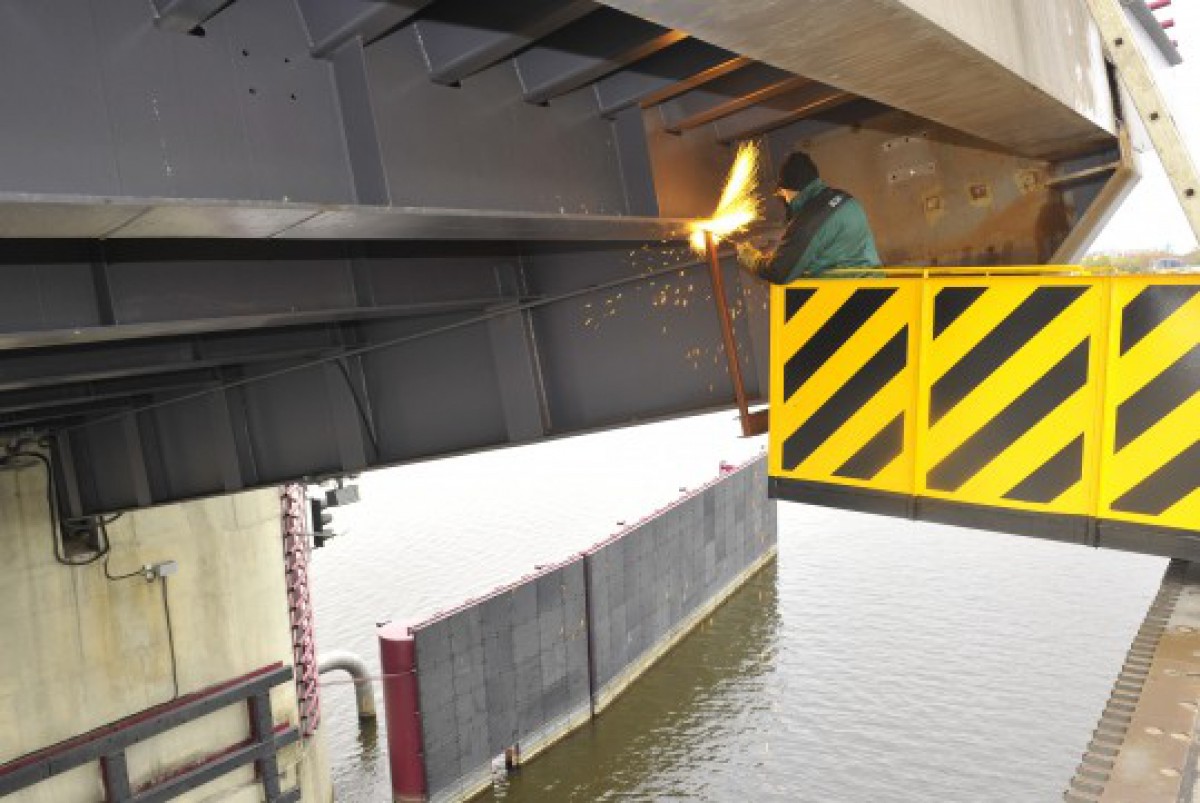 Tomēr pirms jaunā mehānisma uzstādīšanas ir jādemontē vecais, ko tieši tagad arī veic SZMA V speciālisti. Vakar no rīta uz viena no tilta laidumiem jau bija demontēti logi, no kuriem izbīdās slēgmahānisma kustīgās daļas, un paši slēdzēji. Šonedēļ speciālisti plāno pabeigt vecā mehānisma demontāžu un sākt gatavoties jaunā uzstādīšanai. Vajadzēs veikt mērījumus precīzai mehānisma uzstādīšanai, pēc tam sāksies montāžas darbi. Jaunais slēgmehānisms atšķiras no vecā ar savu konstrukciju – tam tiek regulēts bīdāmo slēgmehānisma daļu stāvoklis logos, tādējādi var panākt jebkuru pieguluma blīvumu. Darbi notiek uz speciālām platformām, kuras kompānija izgatavojusi savu darbinieku drošībai un ērtībai.