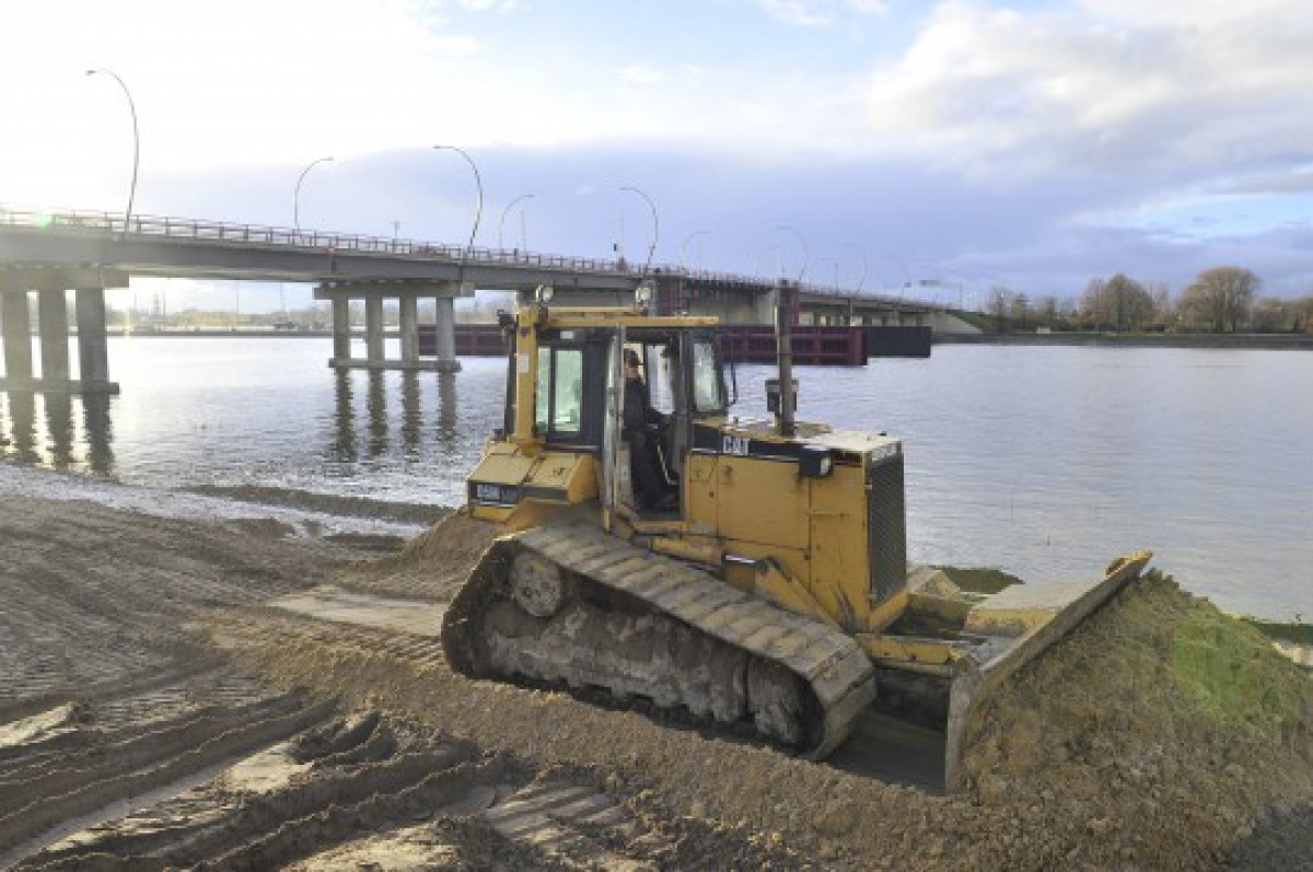 Piestātne pie tilta jau iegūst aprises (FOTO)