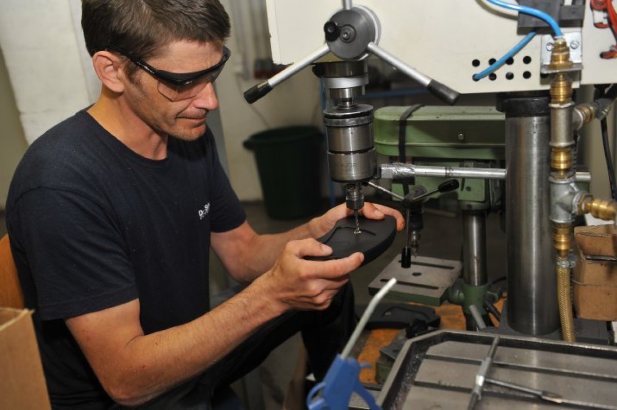 Vladislavs Žolobeckis darbojas ar presformu. Ražošanas procesā ķīmisko vielu sajauc slegtā veidā, iekārtas maisītājgalvā, no kuras to iepilda tieši presformā. Turklāt, lai nodrošinātu izstrādājuma kvalitāti, ražošanas telpās tiek uzturēta nemainīga gaisa temperatūra (+180C).